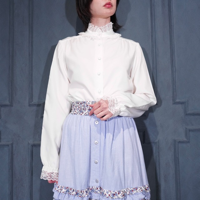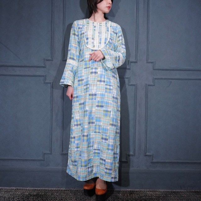 70's USA VINTAGE LACE DESIGN PATCHWORK COTTON DRESS ONE PIECE/70年代アメリカ古着レースデザインパッチワークコットンドレスワンピース