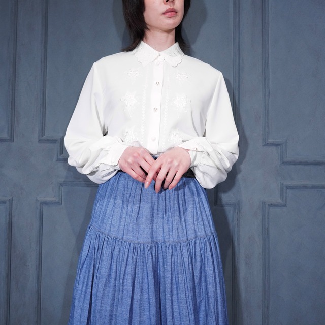 60’s〜70’s USA VINTAGE FLOWER PATTERNED LACE COLLAR DESIGN NIGHTY DRESS QUILTING COAT/アメリカ古着花柄レース襟デザインナイティドレスキルティングコート
