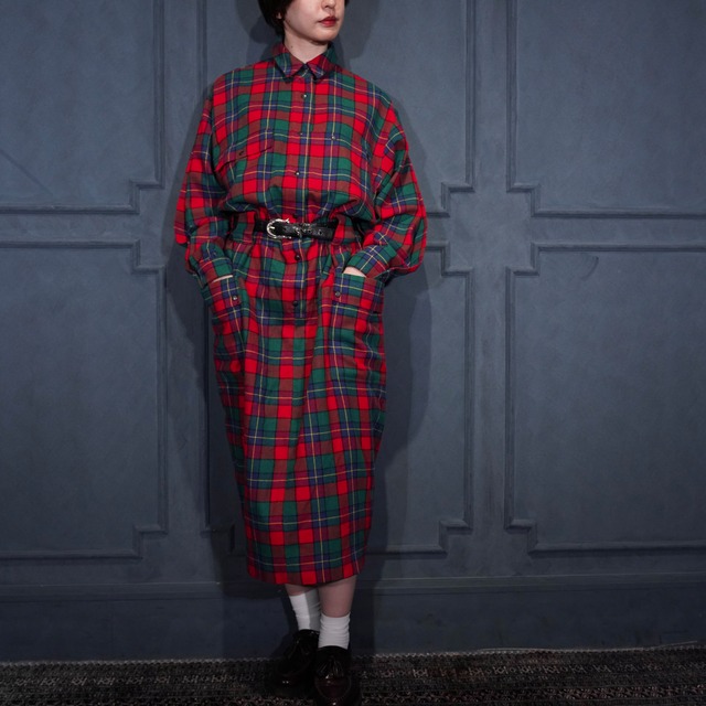USA VINTAGE CHECK PATTERNED ROUND COLLAR DESIGN ONE PIECE/アメリカ古着チェック柄ラウンドカラーデザインワンピース