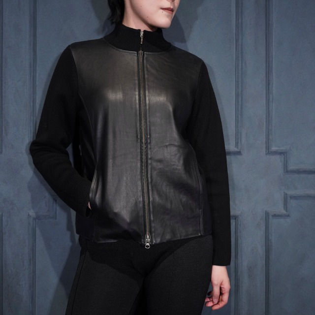 USA VINTAGE PENDLETON KNIT LEATHER ZIP UP DRIVERS BLOUSON/アメリカ古着ペンドルトンニットレザージップアップドライバーズブルゾン