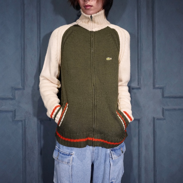 EU VINTAGE LACOSTE LOGO EMBROIDERY DESIGN ZIP UP DRIVERS KNIT BLOUSON/ヨーロッパ古着ラコステロゴ刺繍デザインジップアップドライバーズニットブルゾン