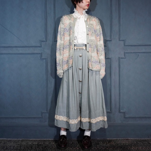 *SPECIAL ITEM* EU VINTAGE Geiser COLLECTION FRONT METAL BUTTON LACE DESIGN LINEN TYROLEAN LONG SKIRT/ヨーロッパ古着フロントメタルボタンレースデザインリネンチロリアンロングスカート
