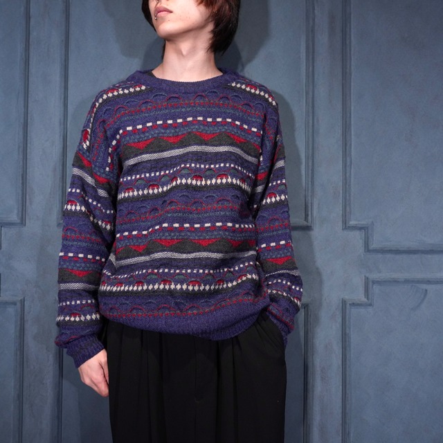 EU VINTAGE THE ITALIAN SWEATER CO. MULTI PATTERNED DESIGN 3D KNIT MADE IN BULGARIA/ヨーロッパ古着マルチパターンデザイン3Dニット