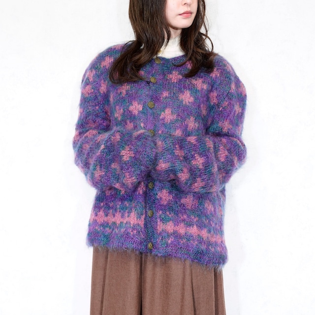 USA VINTAGE PATTERNED DESIGN MOHAIR KNIT CARDIGAN/アメリカ古着柄デザインモヘアニットカーディガン