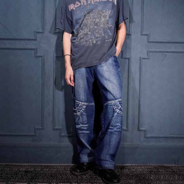 USA VINTAGE FADED DESIGN WIDE CARGO DENIM PANTS/アメリカ古着フェードデザインワイドカーゴデニムパンツ