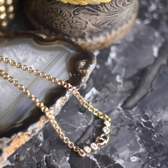 Christian Dior CLEAR STONE LOGO DESIGN CHAIN NECKLACE/クリスチャンディオールクリアストーンデザインチェーンネックレス