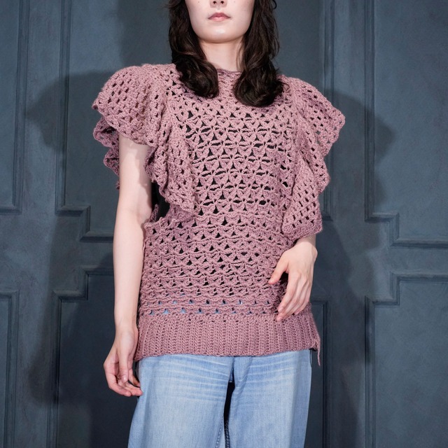 USA VINTAGE MIR MESH DESIGN NO SLEEVE TUNIC ONE PIECE/アメリカ古着メッシュデザインノースリーブチュニックワンピース