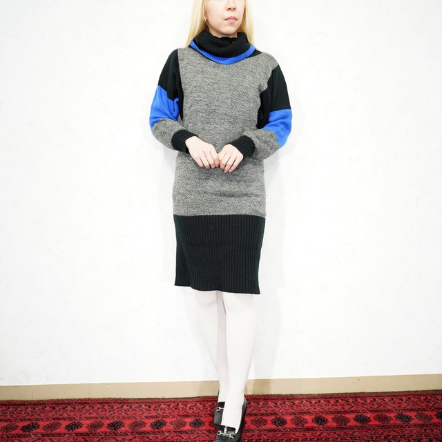 *SALE* USA VINTAGE DRESSY TESSY HIGH NECK DESIGN KNIT ONE PIECE/アメリカ古着ハイネックデザインニットワンピース