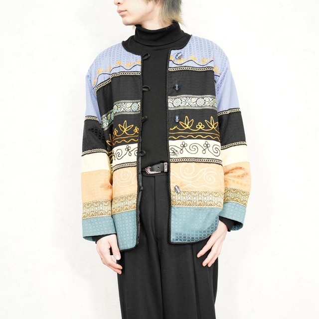*SALE**SPECIAL ITEM* USA VINTAGE Julia Kan NO COLLAR EMBROIDERY PATCHWORK DESIGN JACKET/アメリカ古着ノーカラー刺繍パッチワークデザインジャケット