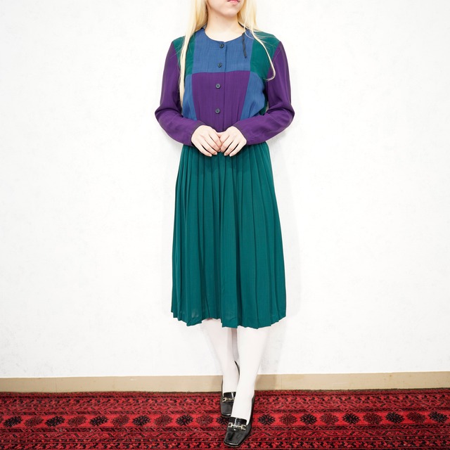 *SALE* USA VINTAGE LESLIE FAY MULTI PATTERNED DESIGN ONE PIECE/アメリカ古着マルチパターンデザインワンピース