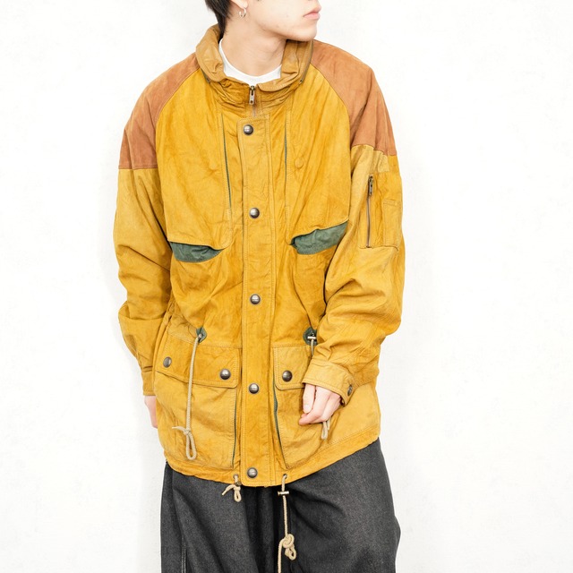 ご覧頂きまして、ありがとうございます。 ◯商品名 *SPECIAL ITEM* USA VINTAGE hurricane collection DESIGN LEATHER MILITALY COAT/アメリカ古着デザインレザーミリタリーコート ◯サイズ 表記サイズ L 裄丈:95cm(背中心から) 身幅:64.5cm 着丈:78.5cm 袖丈:脇下から:51.5cm ◯カラー マスタードイエロー系、など ◯コンディション こちらのお品物のコンディションはBです。 S 新品に近いもの A 比較的状態のいいもの B 一般的な使用感があるもの C 使用感がやや目立つもの D 使用感が多いものおよびジャンク品 *ただし当店の基準による ◯付属品 なし コンディションに関してはお客様との相違がないようにできるだけ、記載、掲載していますが、使用感の捉え方には個人差があり、またUSED品のため細かい汚れ・キズなどがあります。それを全て記載するのは難しいので、しっかり確認の上購入お願いします。 神経質な方、USED品に理解のない方はご購入をご遠慮ください。 色味に関しては写真ではどうしても実物と違って見える場合がありますので、あらかじめご了承ください。 また採寸にはどうしても若干のズレが生じる場合がありますのでそちらもご了承ください。