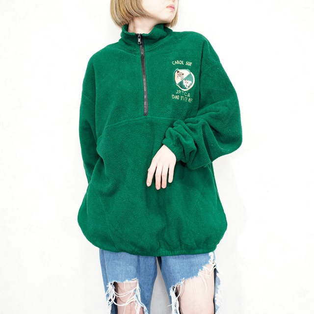 *SALE* USA VINTAGE AUBURN DOG EMBROIDERY DESIGN FLEECE HALF ZIP FLEECE JACKET/アメリカ古着わんこ刺繍デザインハーフジップフリースジャケット