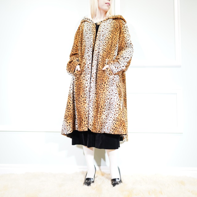 *SALE* USA VINTAGE LEOPARD PATTERNED FLEECE HOODIE COAT MADE IN USA/アメリカ古着レオパード柄フリースフーディコート