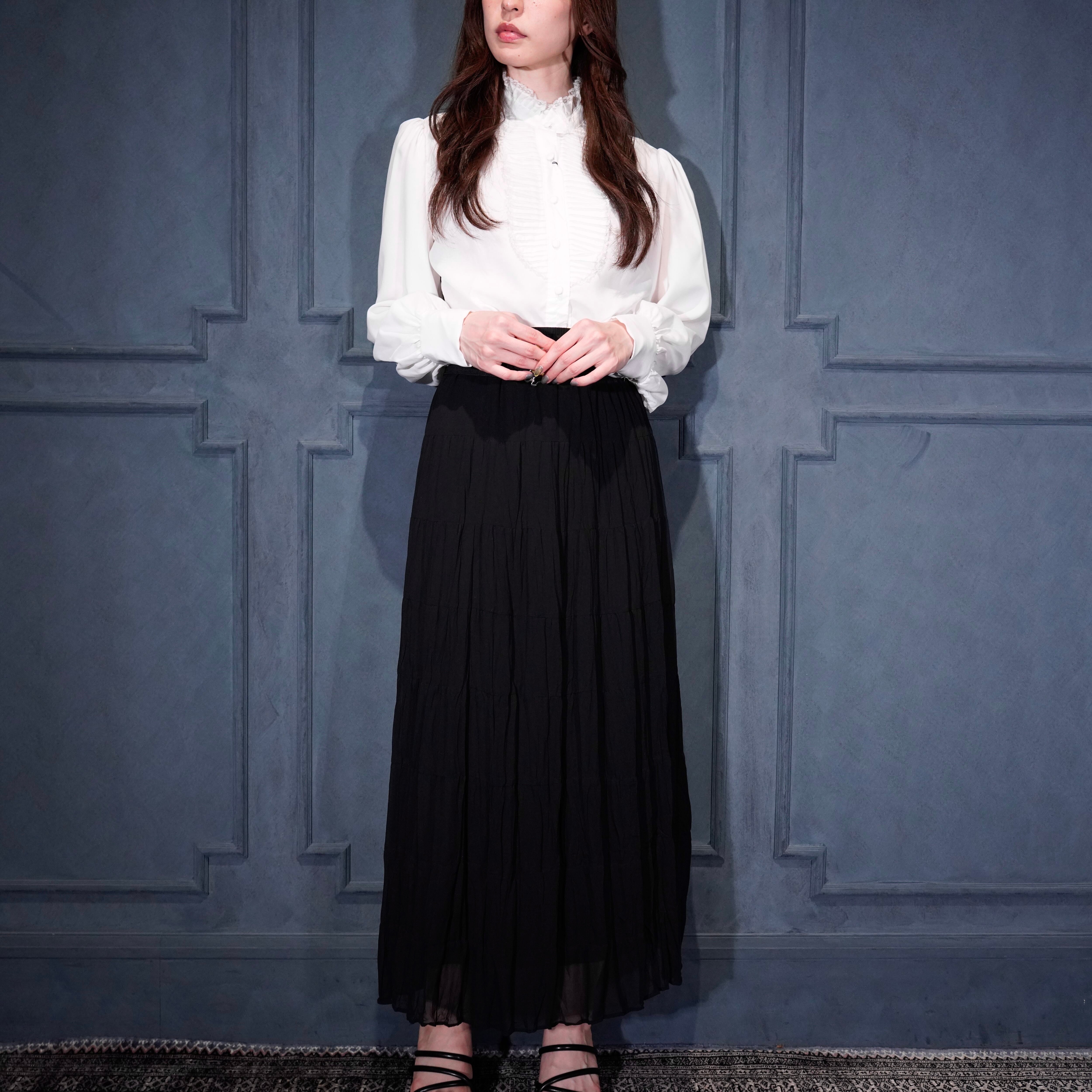 USA VINTAGE JOMATTHEWS FRILL DESIGN STAND COLLAR SHIRT/アメリカ古着フリルデザインスタンドカラーデザインシャツ