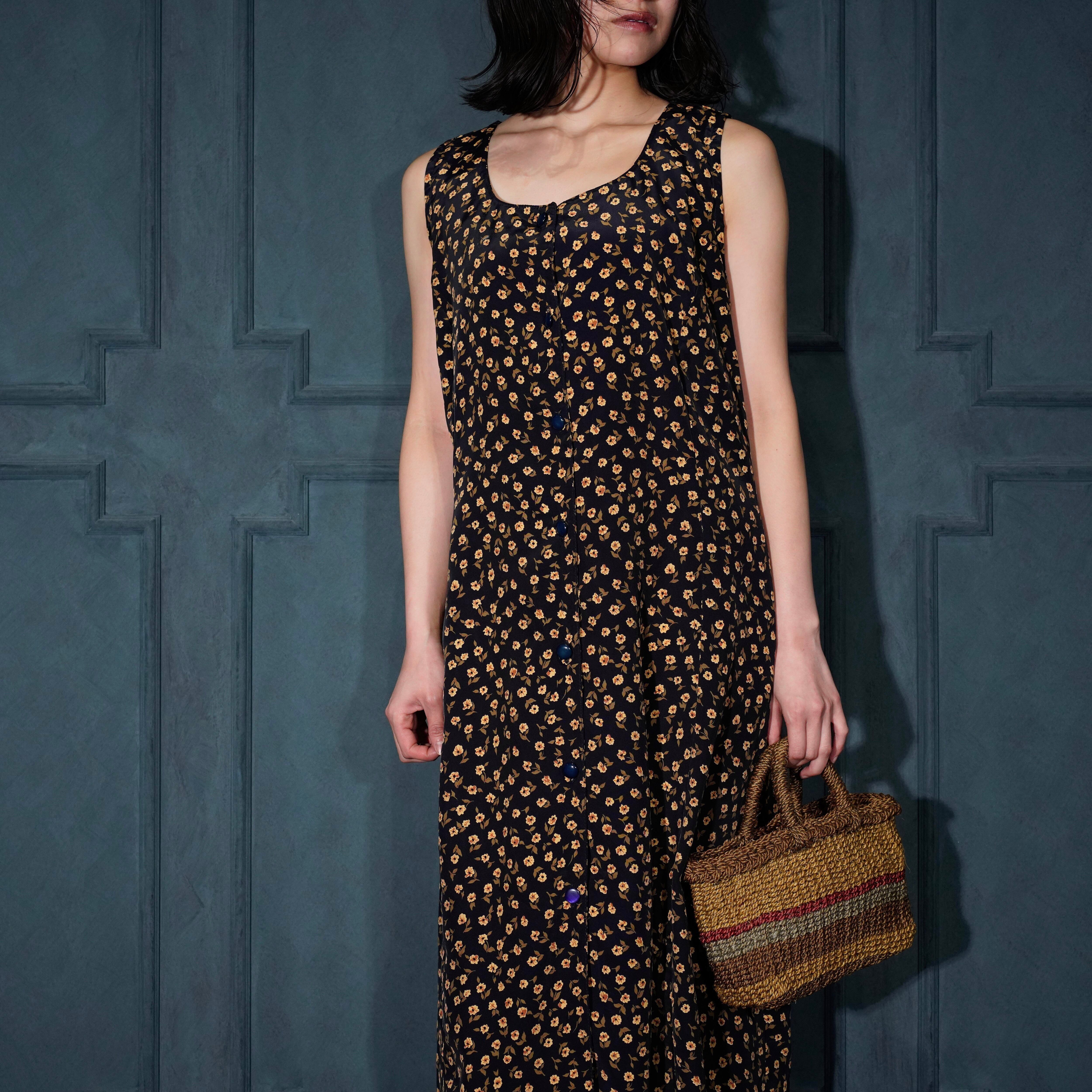 USA VINTAGE FLOWER PATTERNED DESIGN NO SLEEVE ONE PIECE/アメリカ古着お花柄デザインノースリーブワンピース