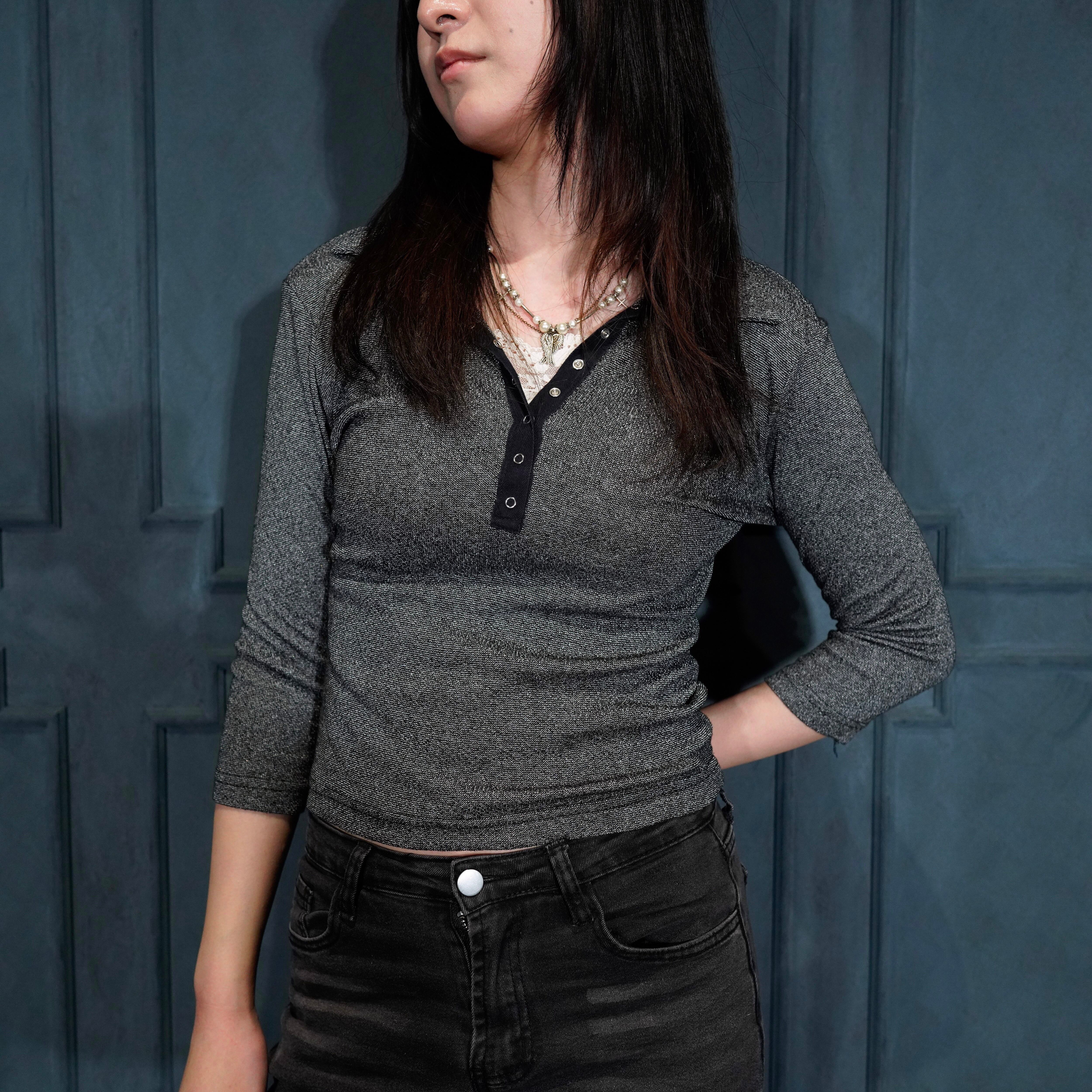 USA VINTAGE ANXIETY CAFE TIGHT DESIGN POLO SHIRT MADE IN USA/アメリカ古着タイトデザインポロシャツ