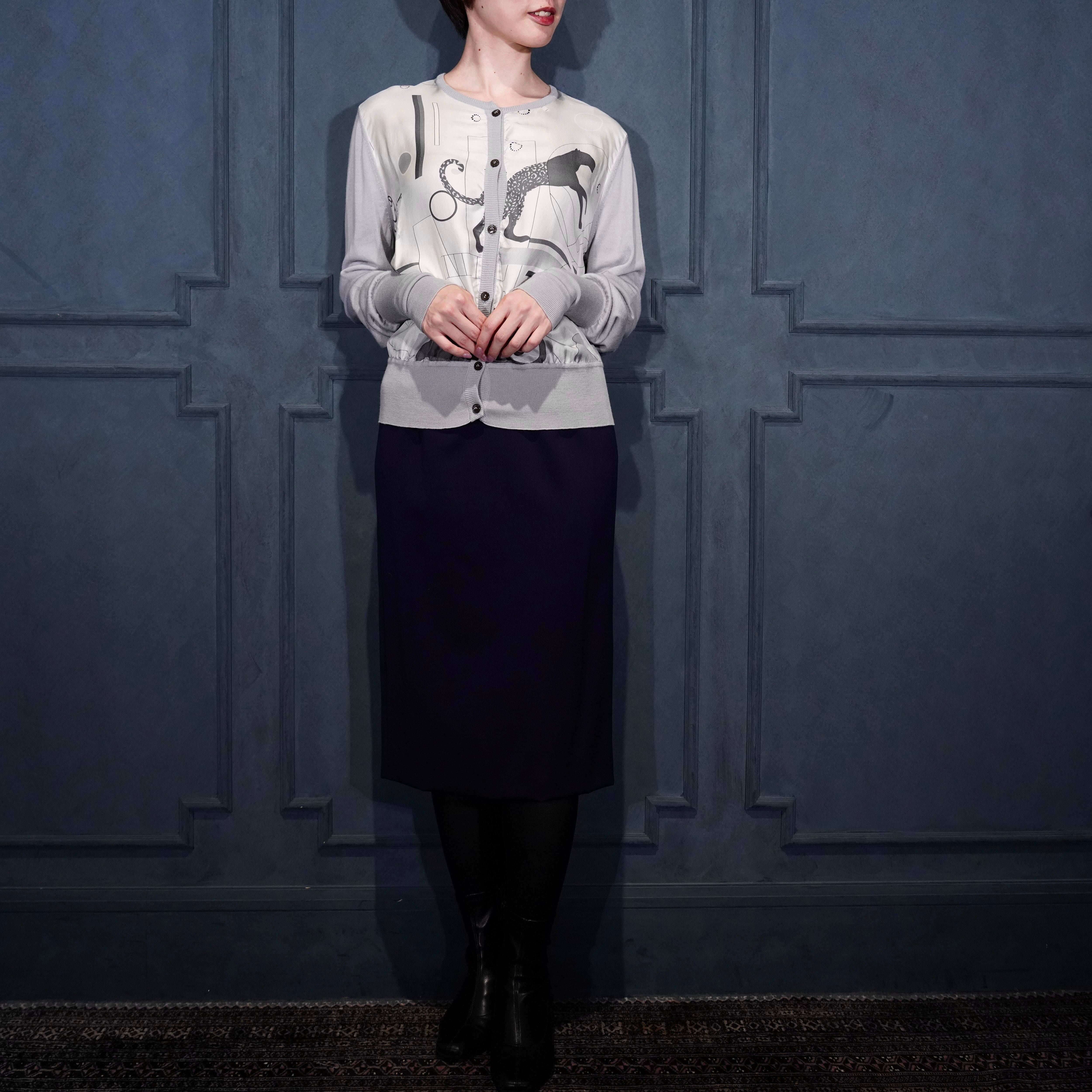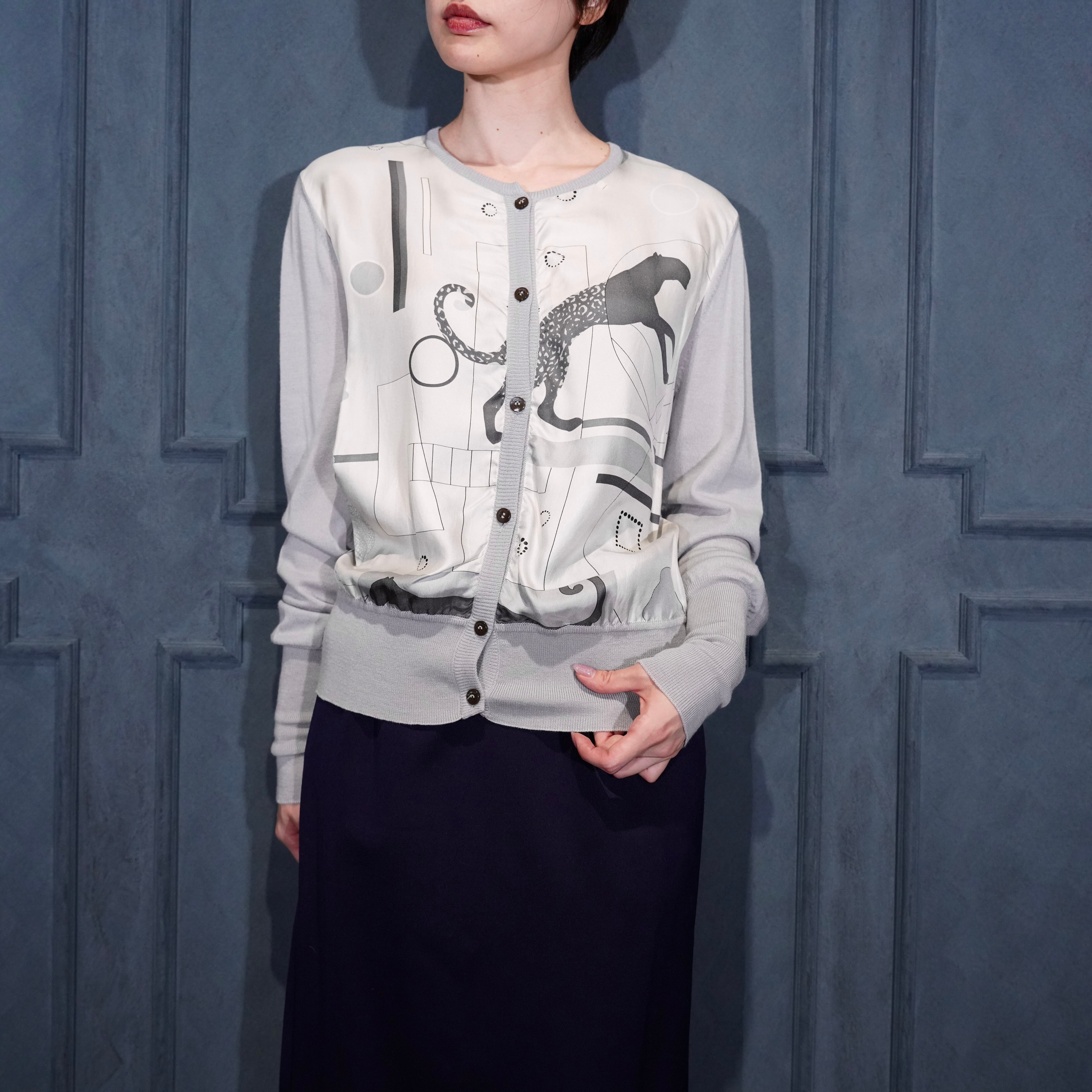 Salvatore Ferragamo SCARF PATTERNED KNIT SWITCHED DESIGN SILK WOOL CARDIGAN/サルヴァトーレフェラガモスカーフ柄ニット切替デザインシルクウールカーディガン