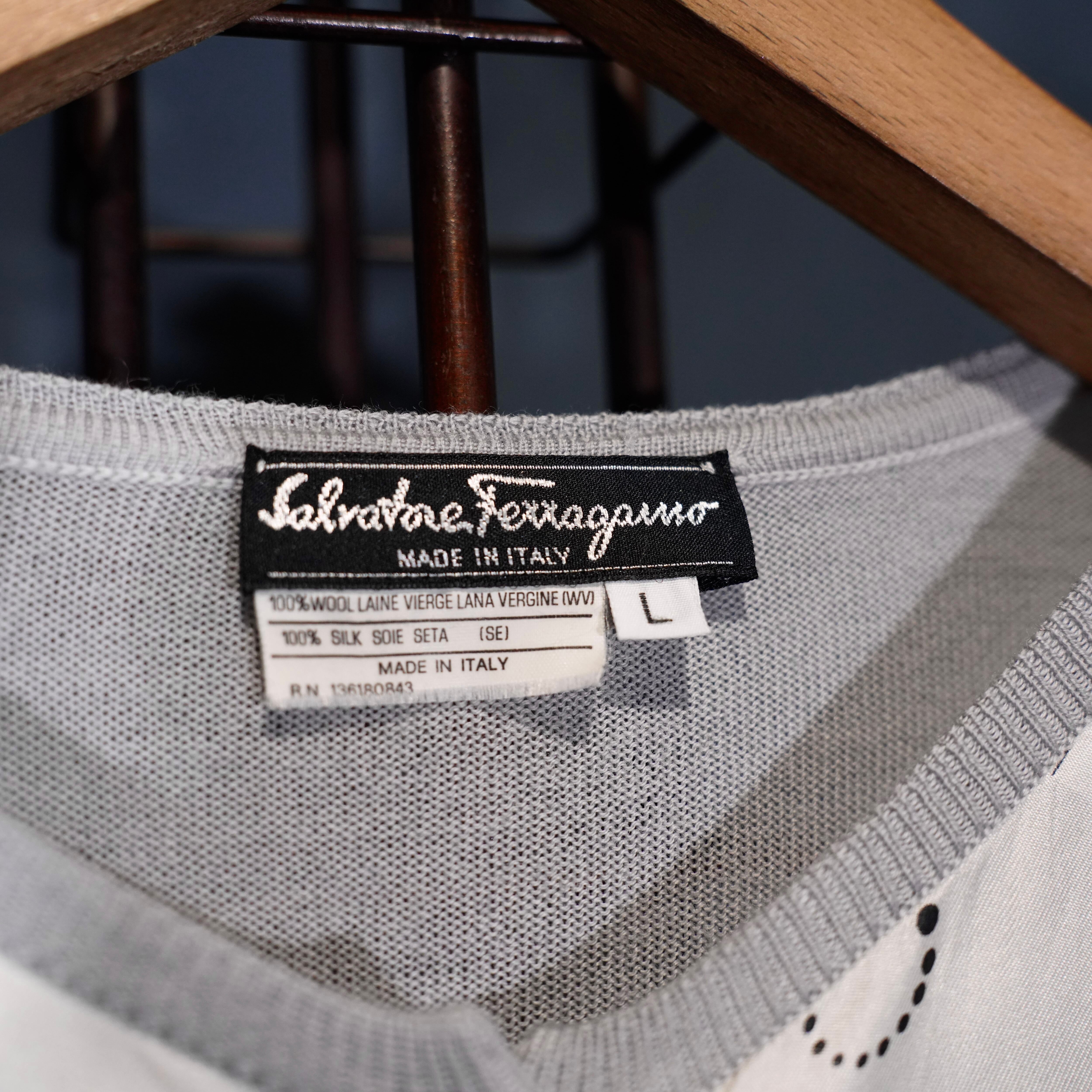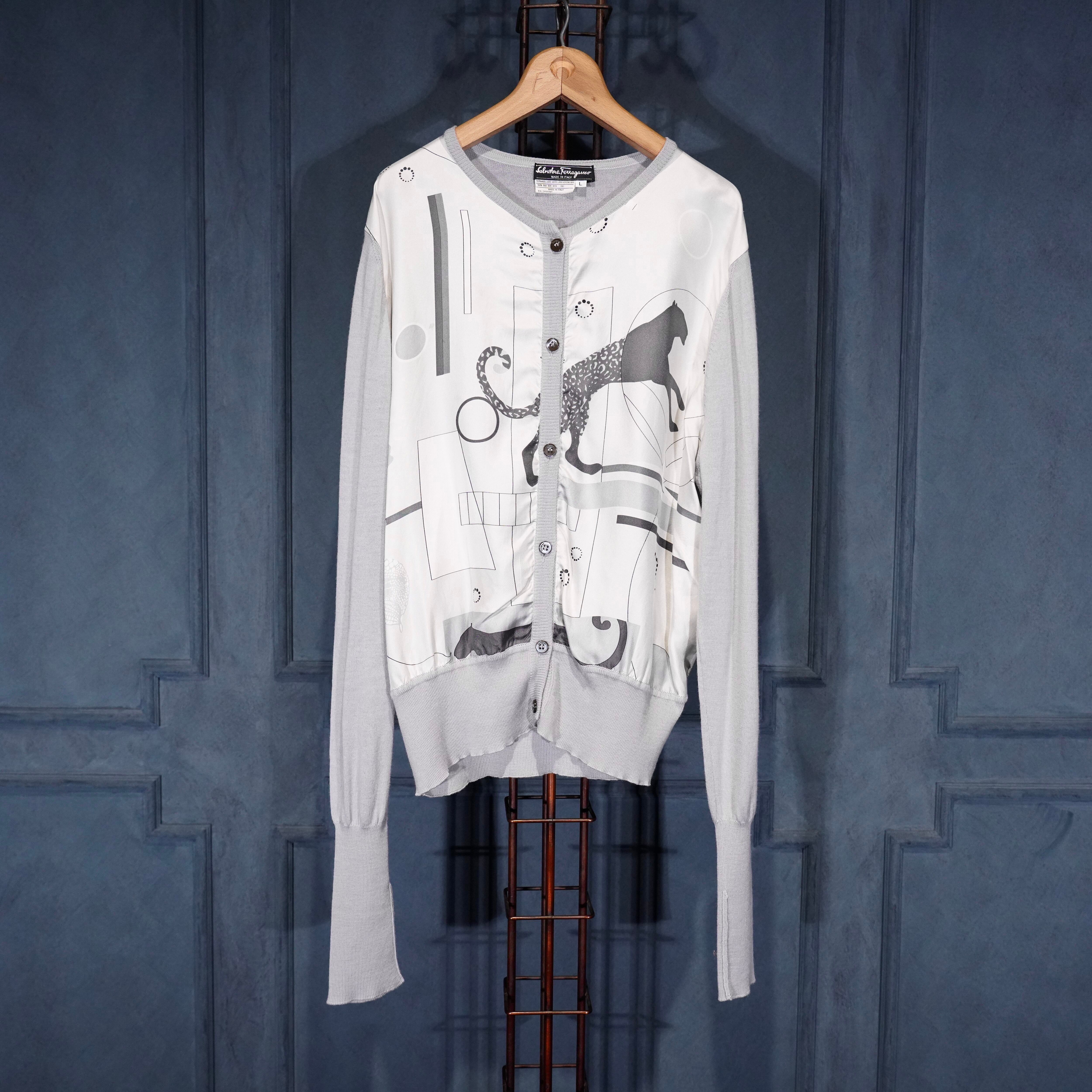 . Salvatore Ferragamo SCARF PATTERNED KNIT SWITCHED DESIGN SILK WOOL CARDIGAN/サルヴァトーレフェラガモスカーフ柄ニット切替デザインシルクウールカーディガン 2000000072814