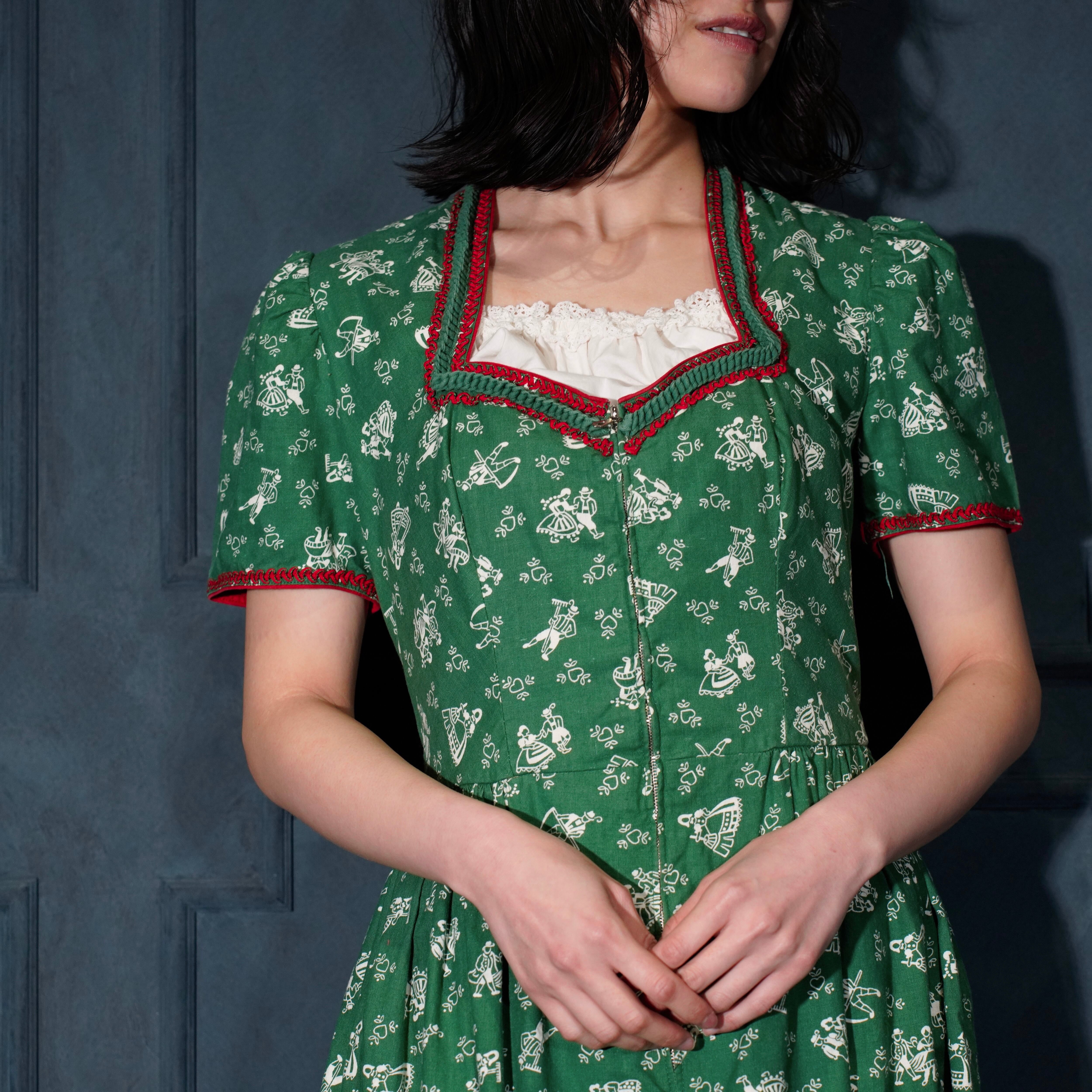 EU VINTAGE PATTERNED DESIGN TYROLEAN ONE PIECE/ヨーロッパ古着柄デザインチロリアンワンピース