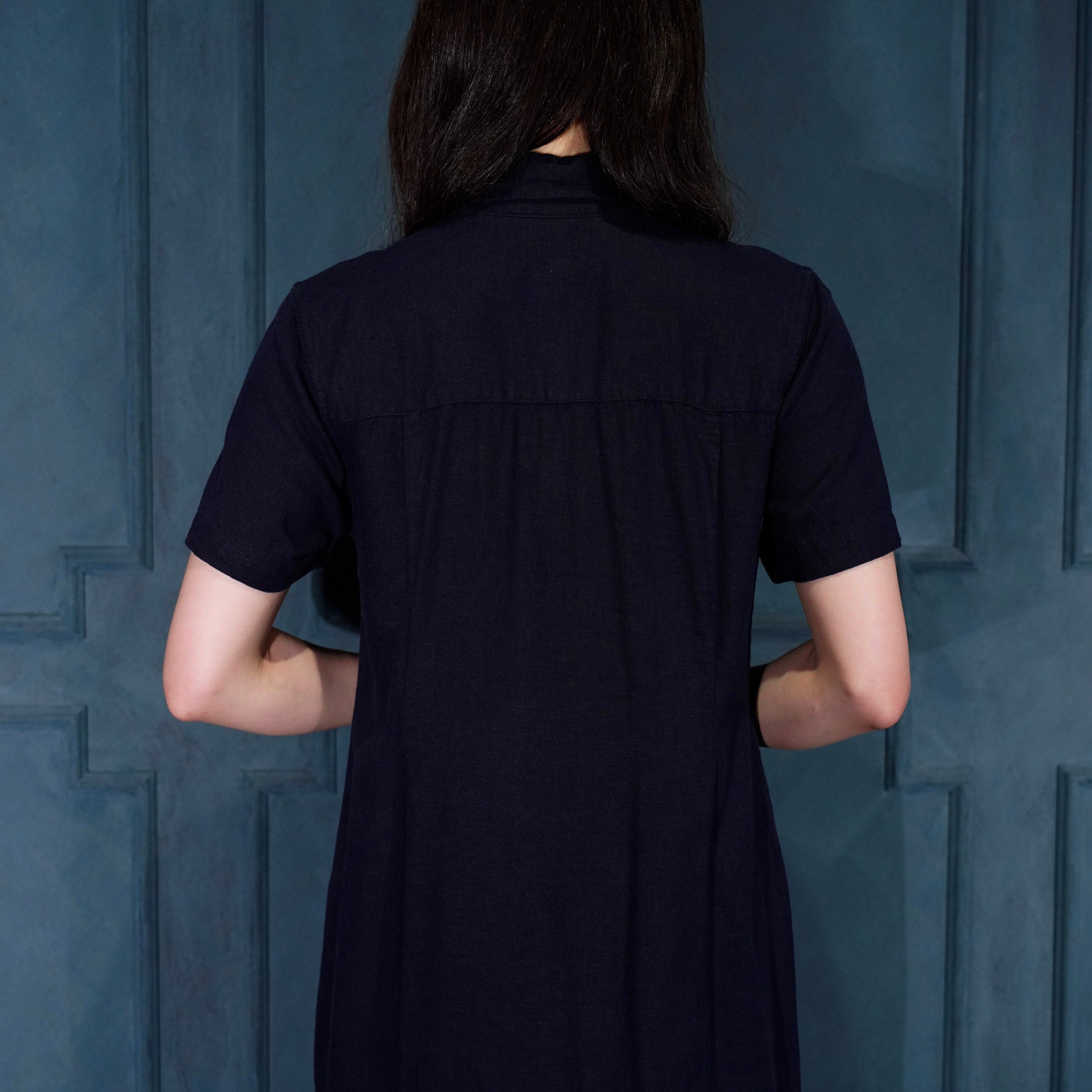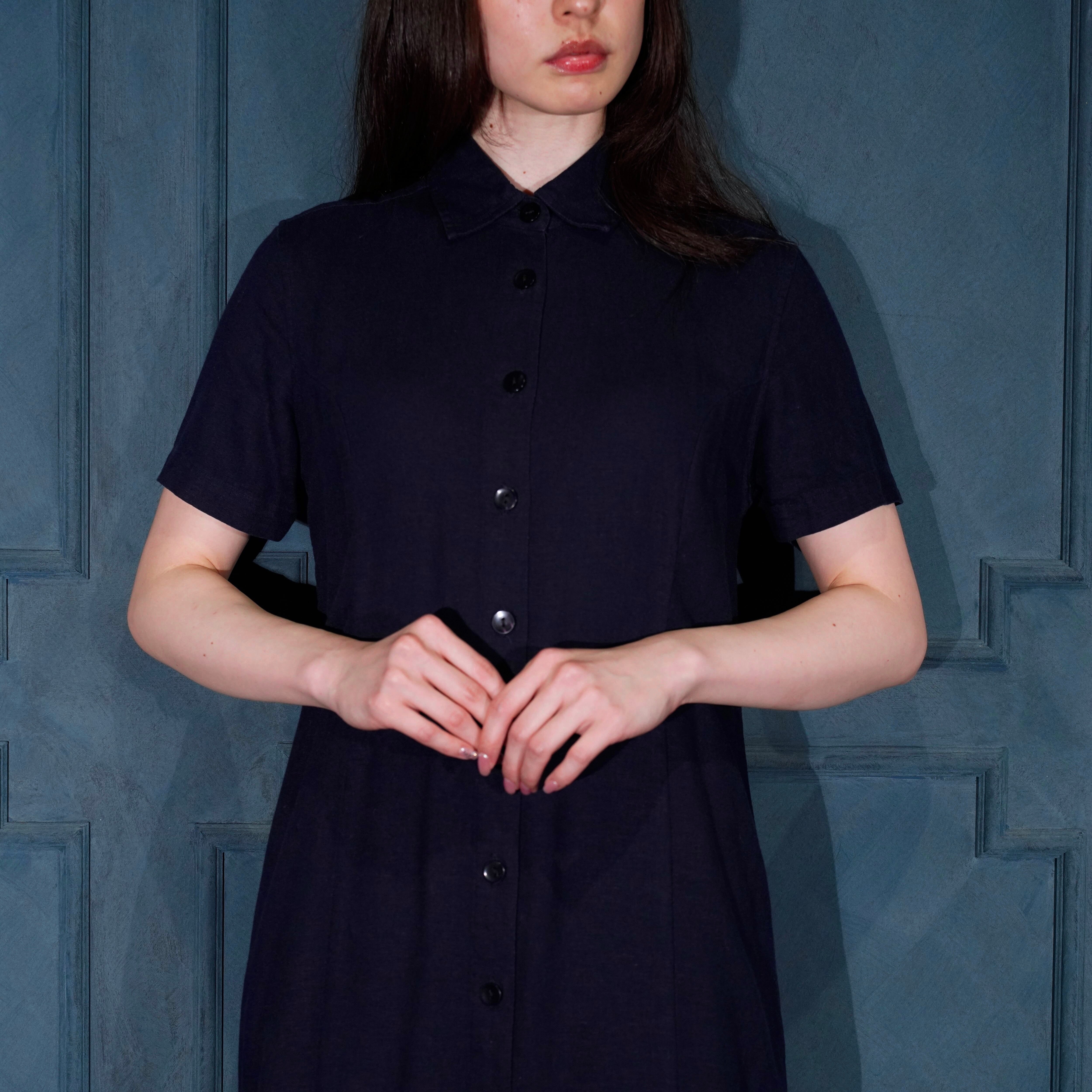 USA VINTAGE christopher&banks NAVY COLOR FRONT BUTTON DESIGN LINEN ONE PIECE/アメリカ古着ネイビーカラーフロントボタンデザインリネンワンピース