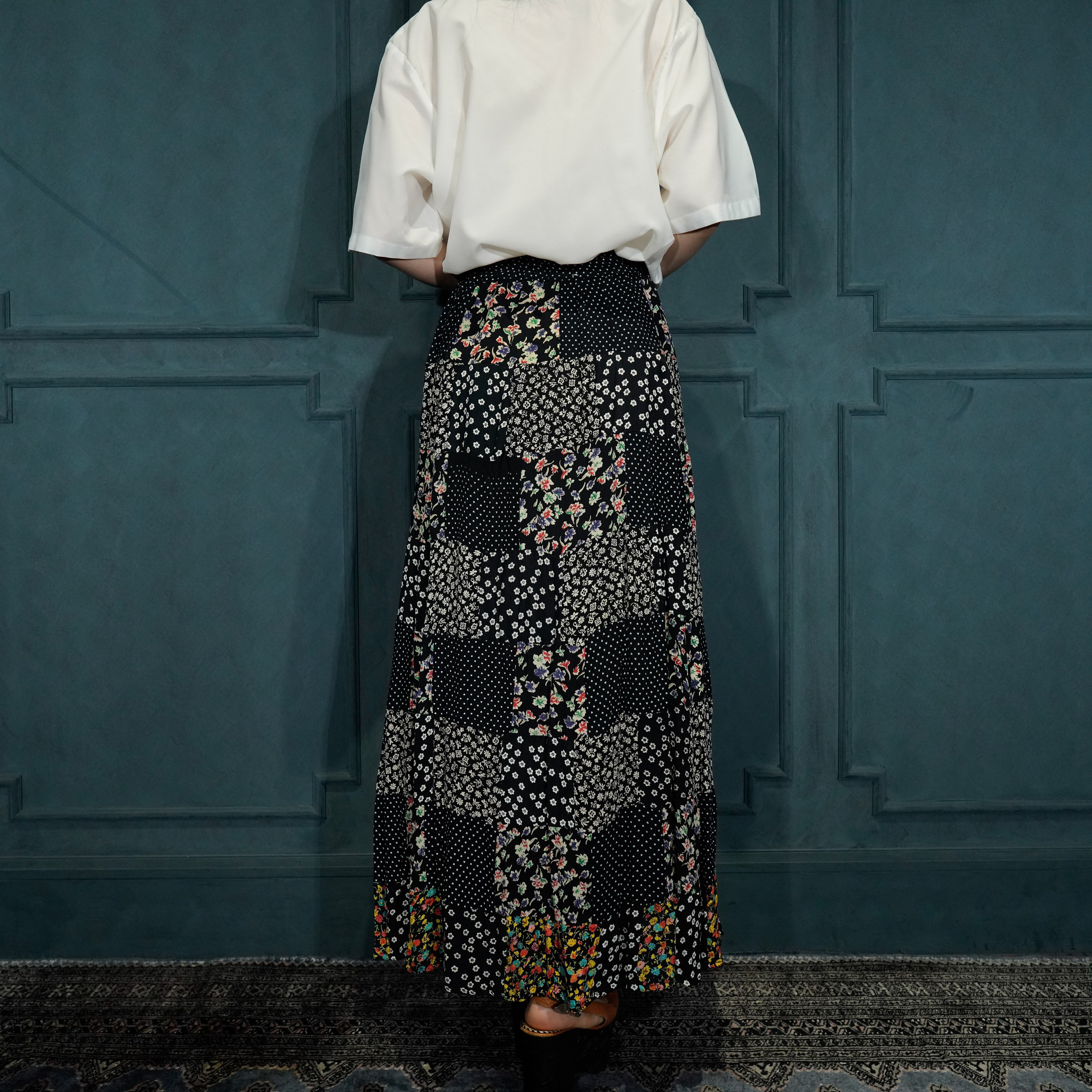 USA VINTAGE JACK POT FLOWER PATTERNED PATCHWORK DESIGN LONG SKIRT/アメリカ古着花柄パッチワークデザインロングスカート
