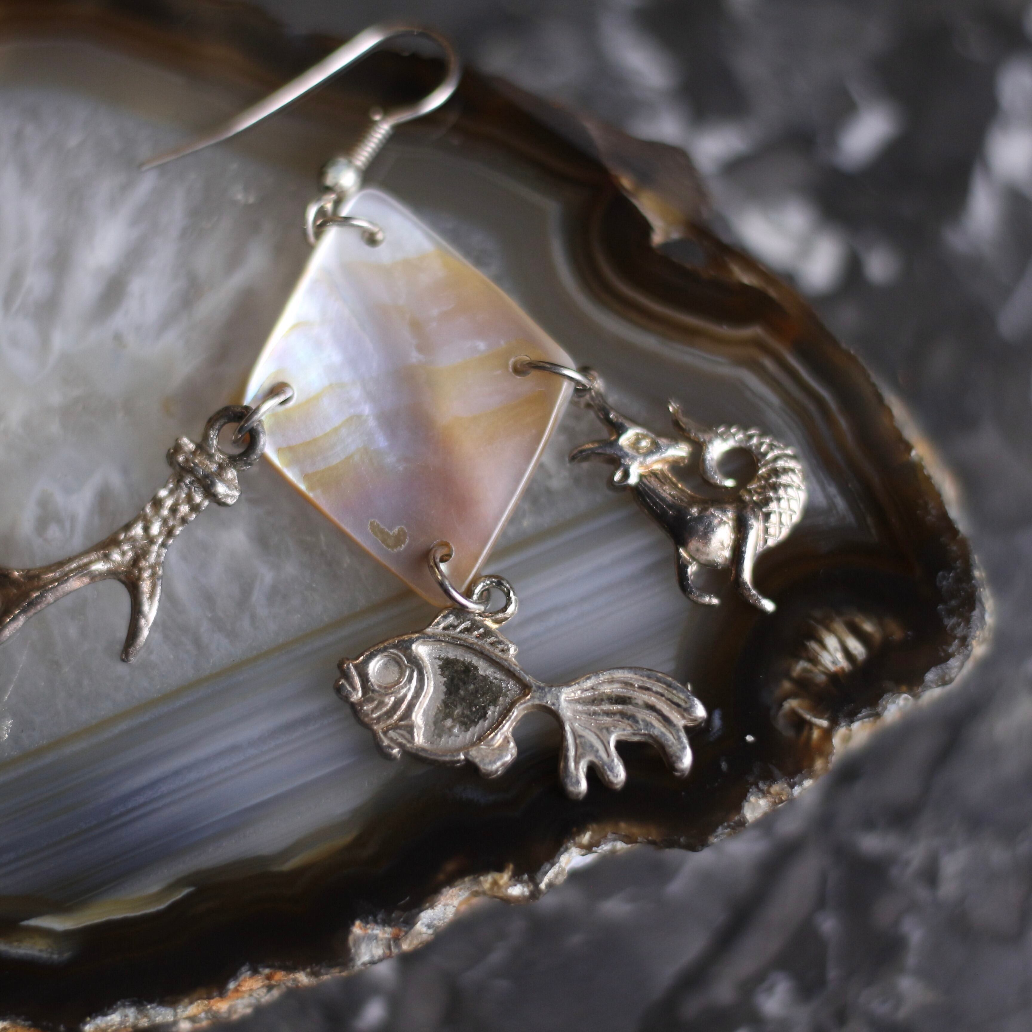 USA VINTAGE SEA MONSTER SWING DESIGN EARRING/アメリカ古着海の生き物ぶら下がりデザインピアス