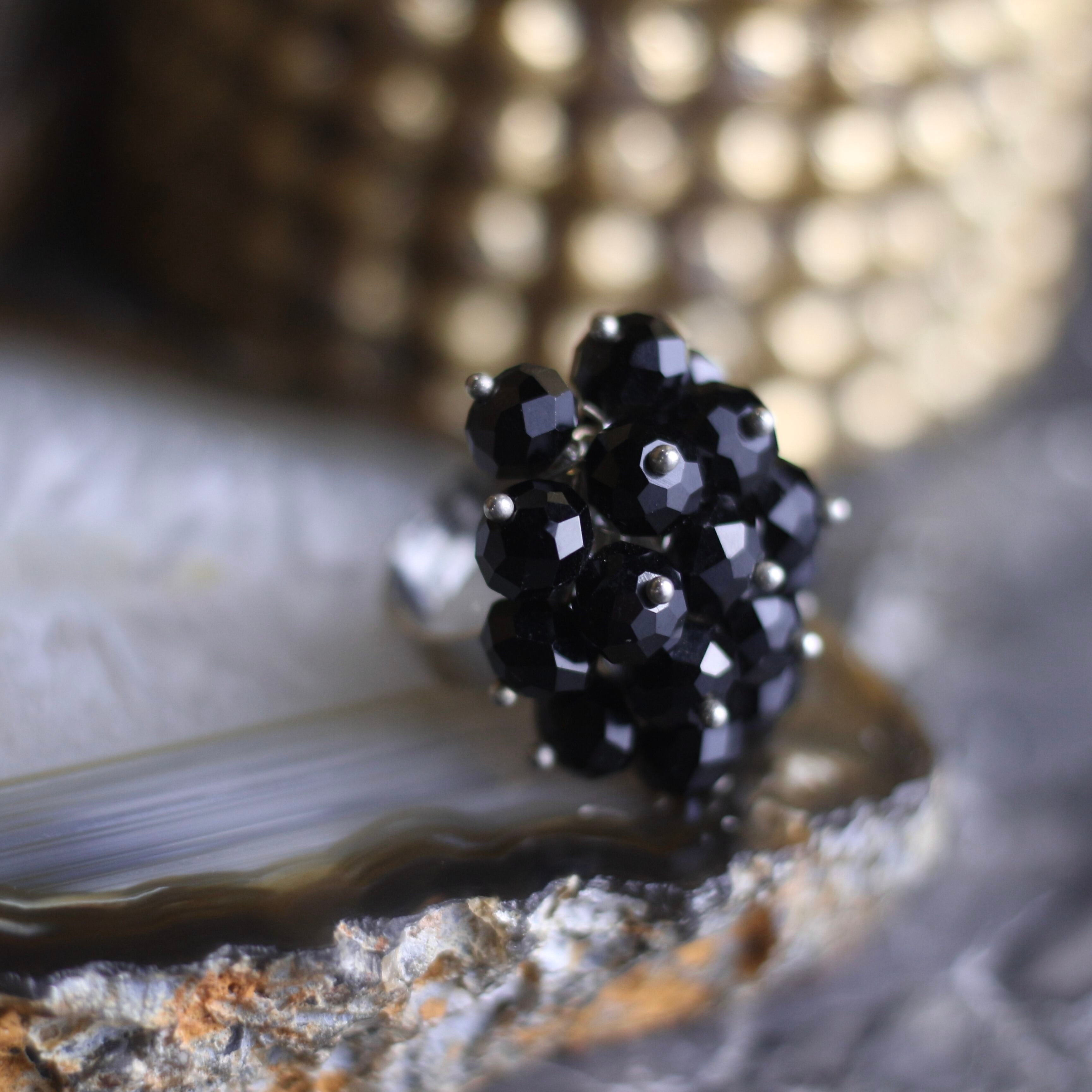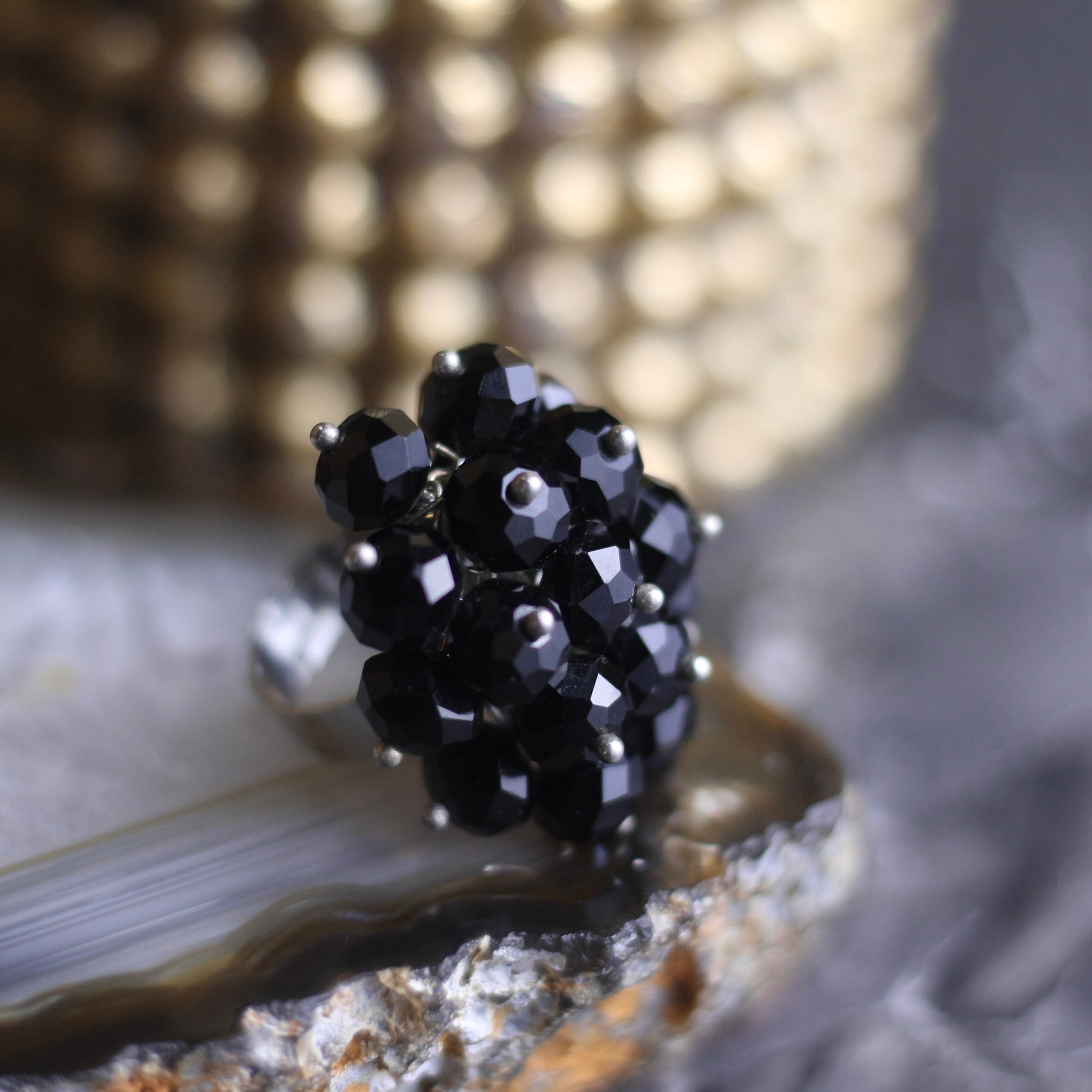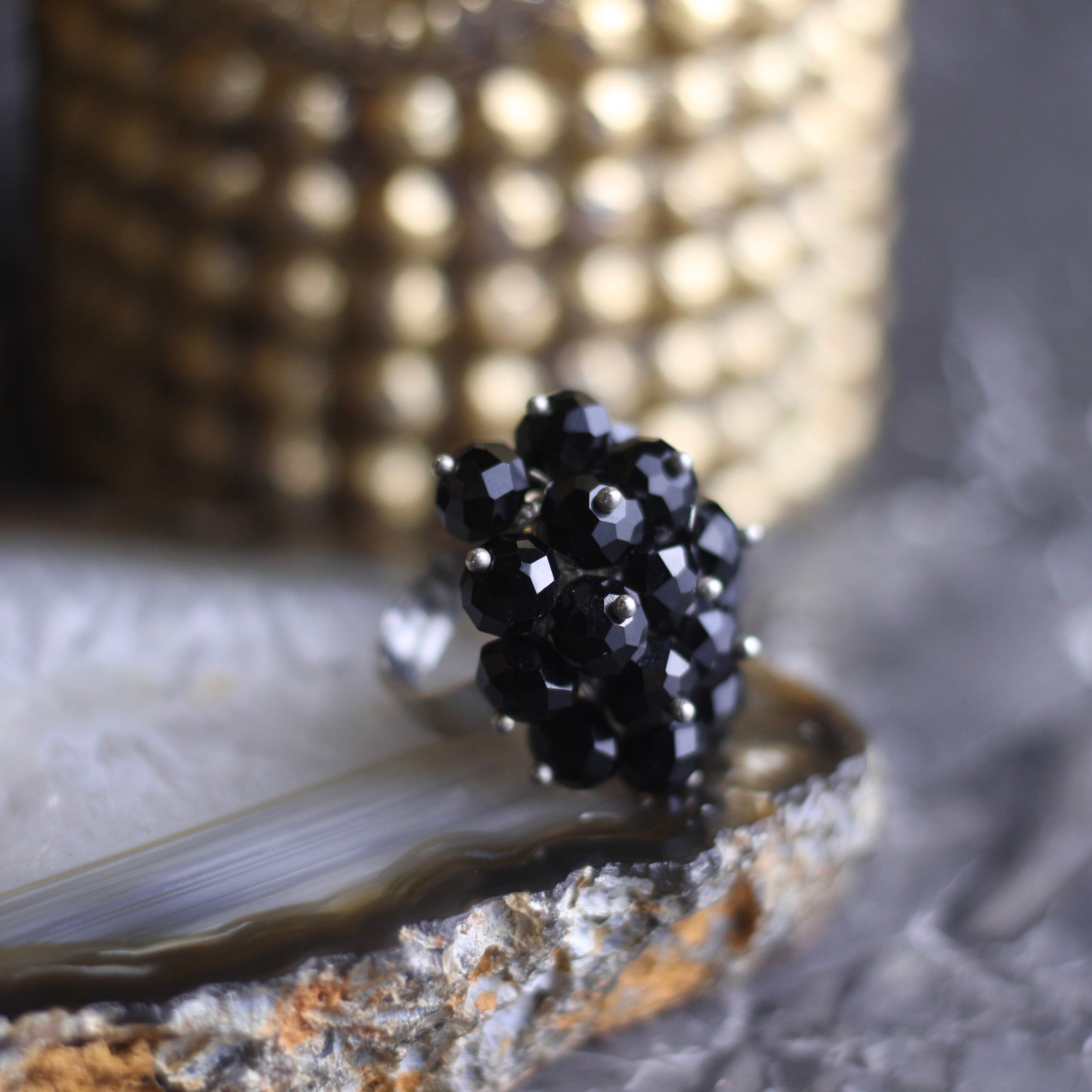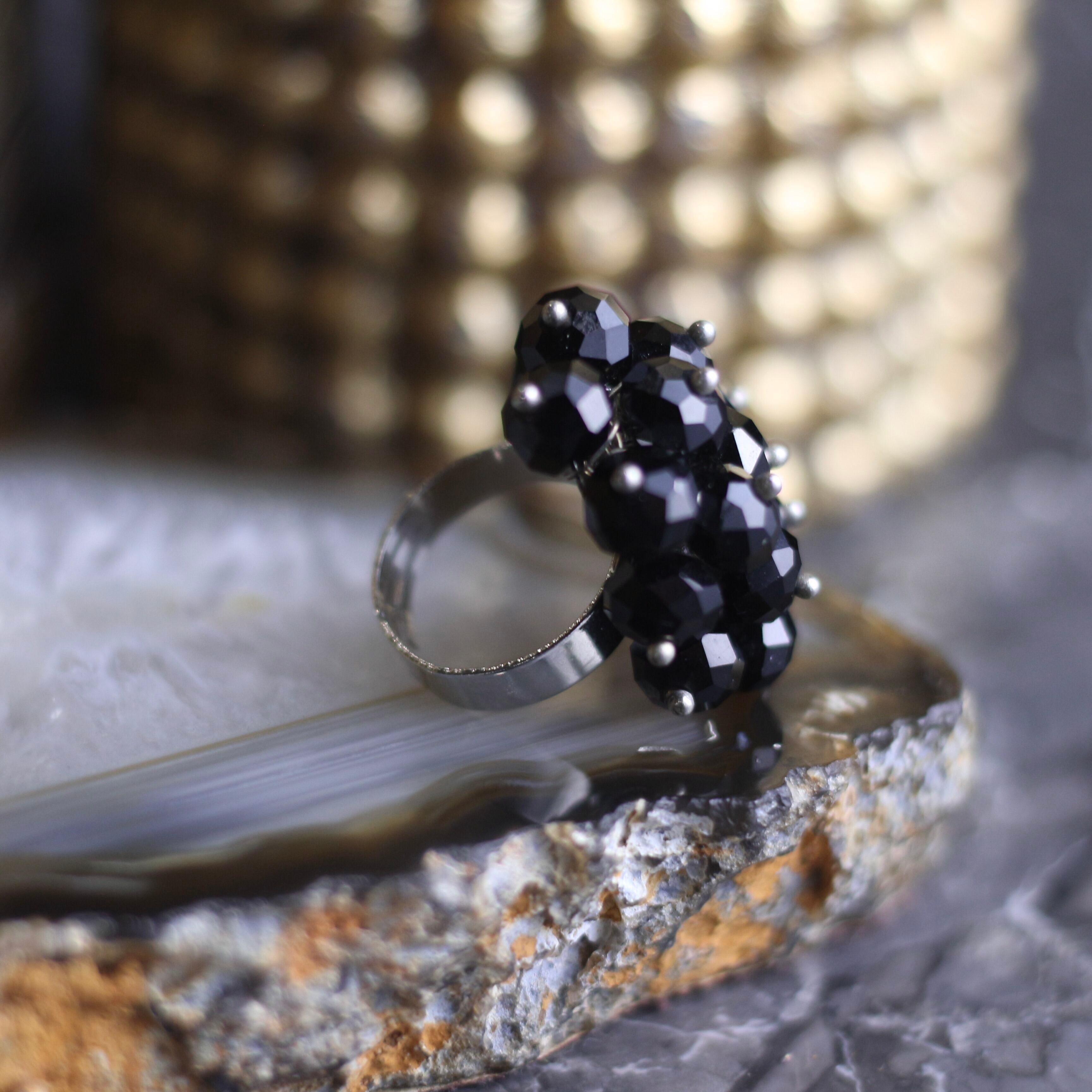 USA VINTAGE BLACK COLOR BEADS DESIGN RING/アメリカ古着ブラックカラービーズデザインリング