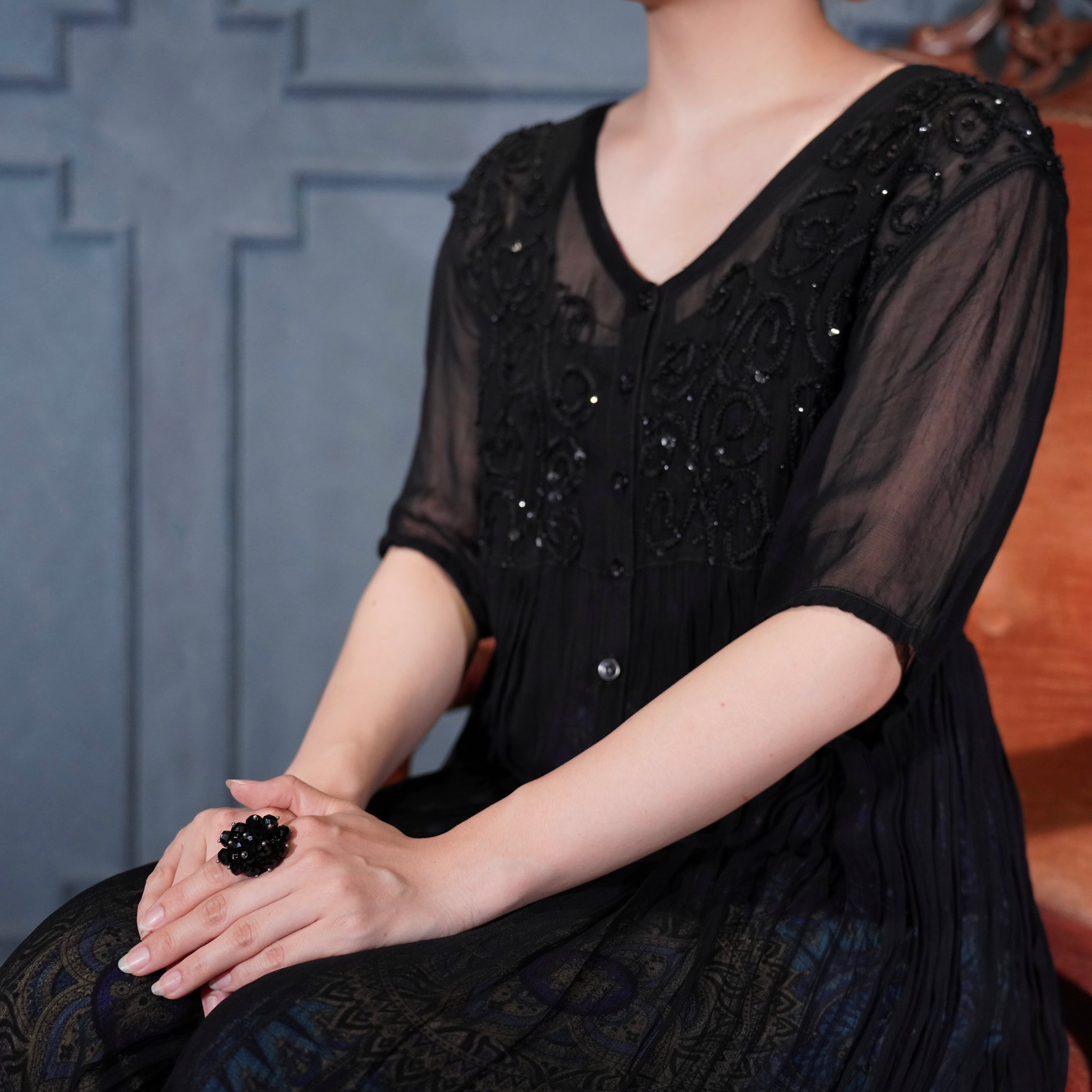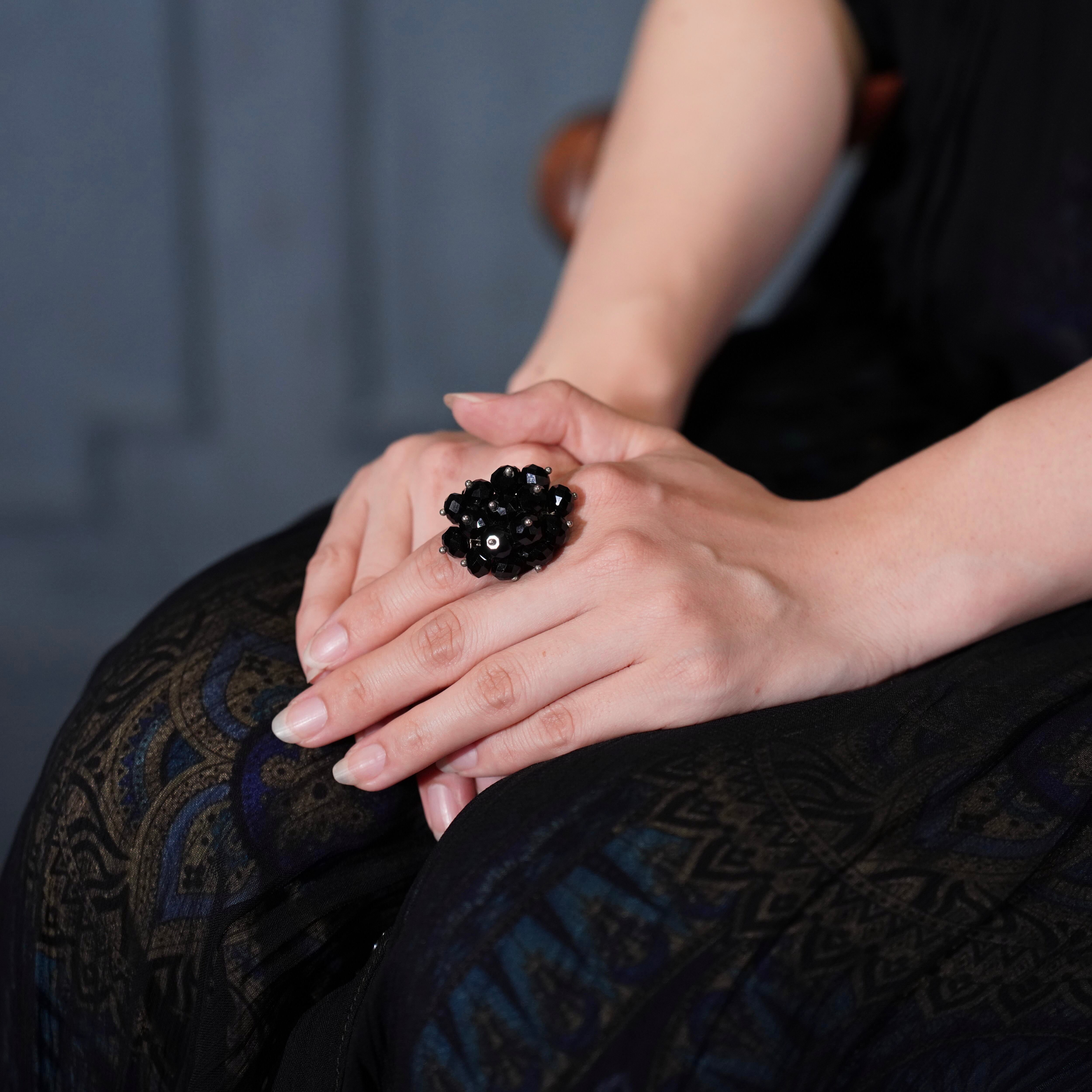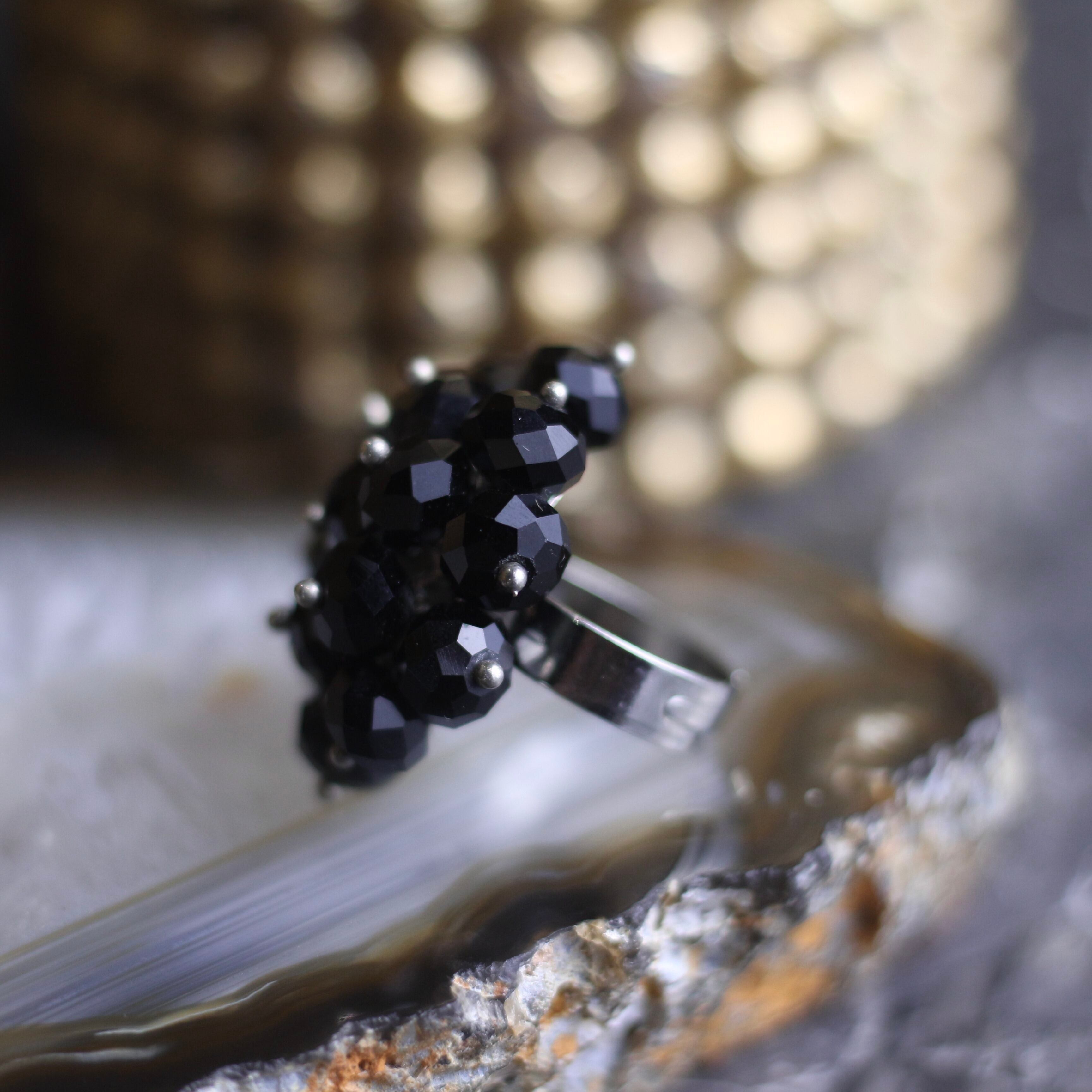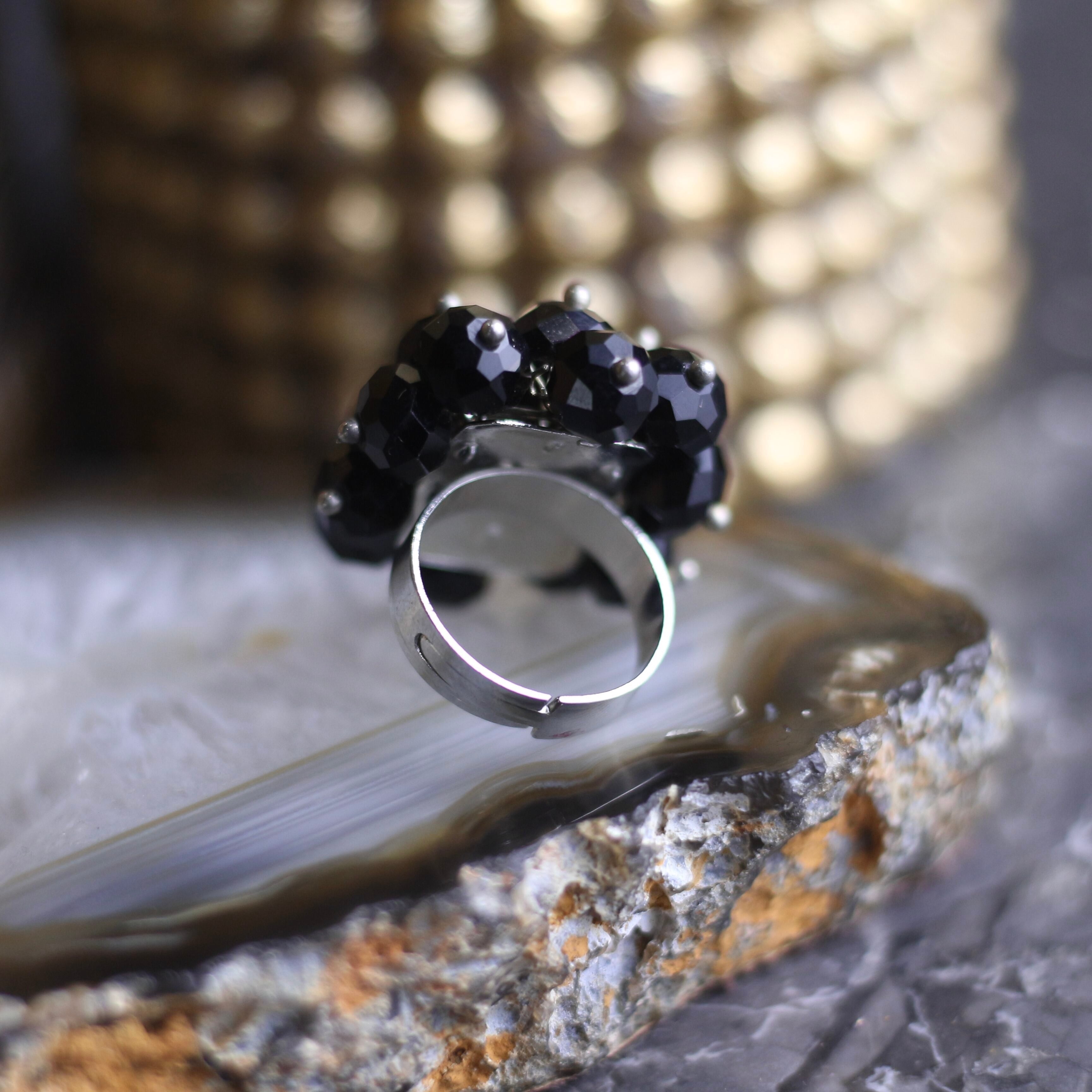 USA VINTAGE BLACK COLOR BEADS DESIGN RING/アメリカ古着ブラックカラービーズデザインリング