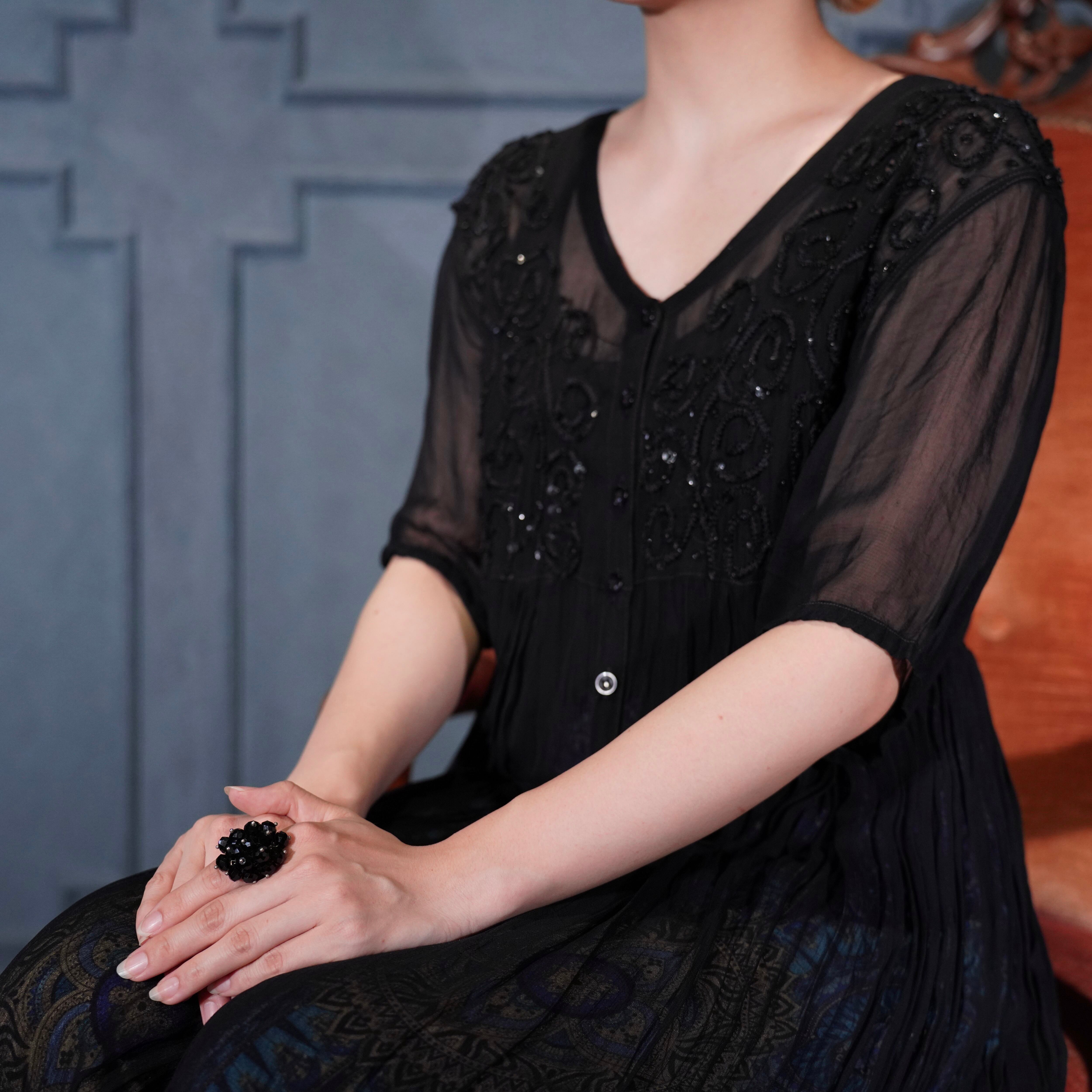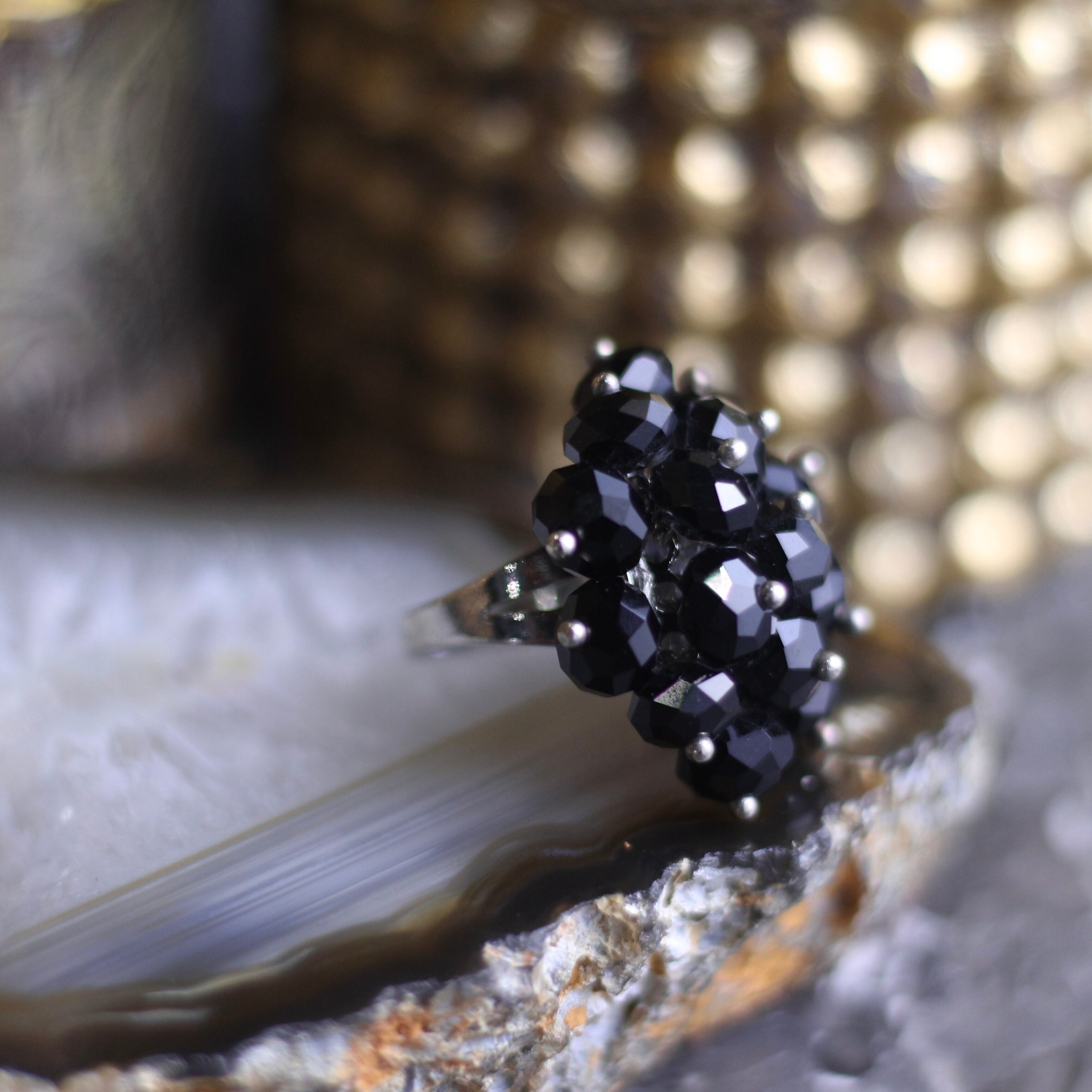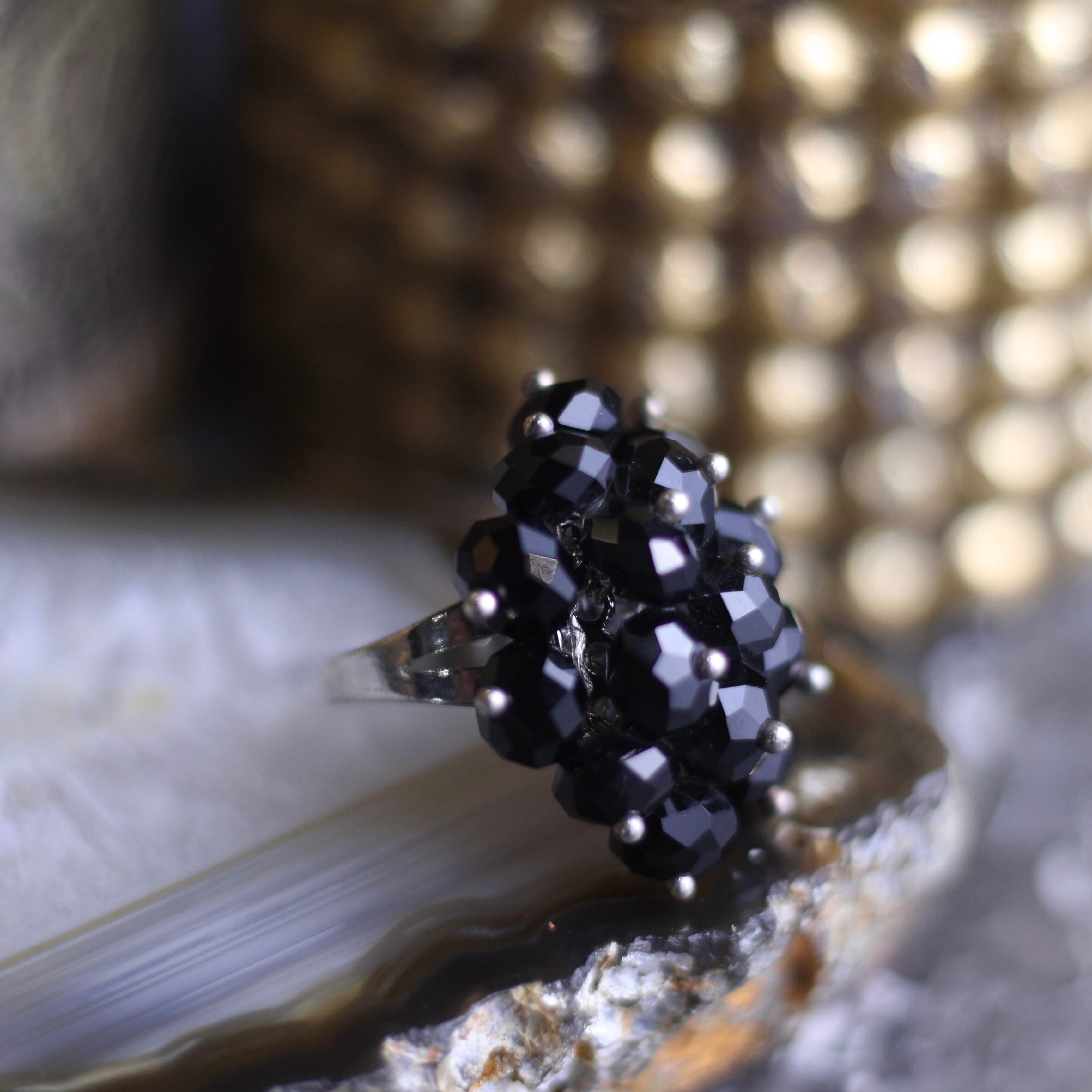 USA VINTAGE BRACK COLOR BEADS DESIGN RING/アメリカ古着ブラックカラービーズデザインリング