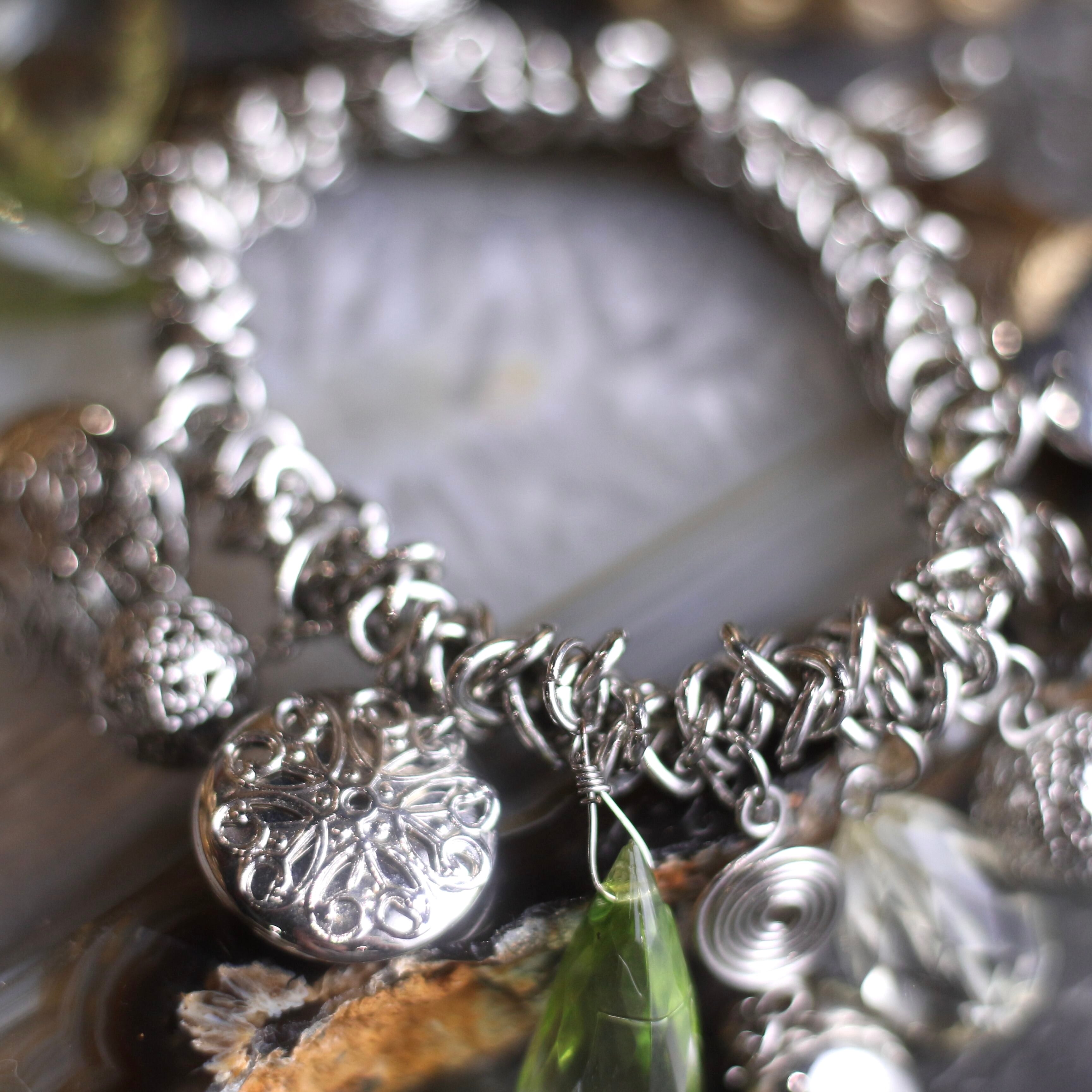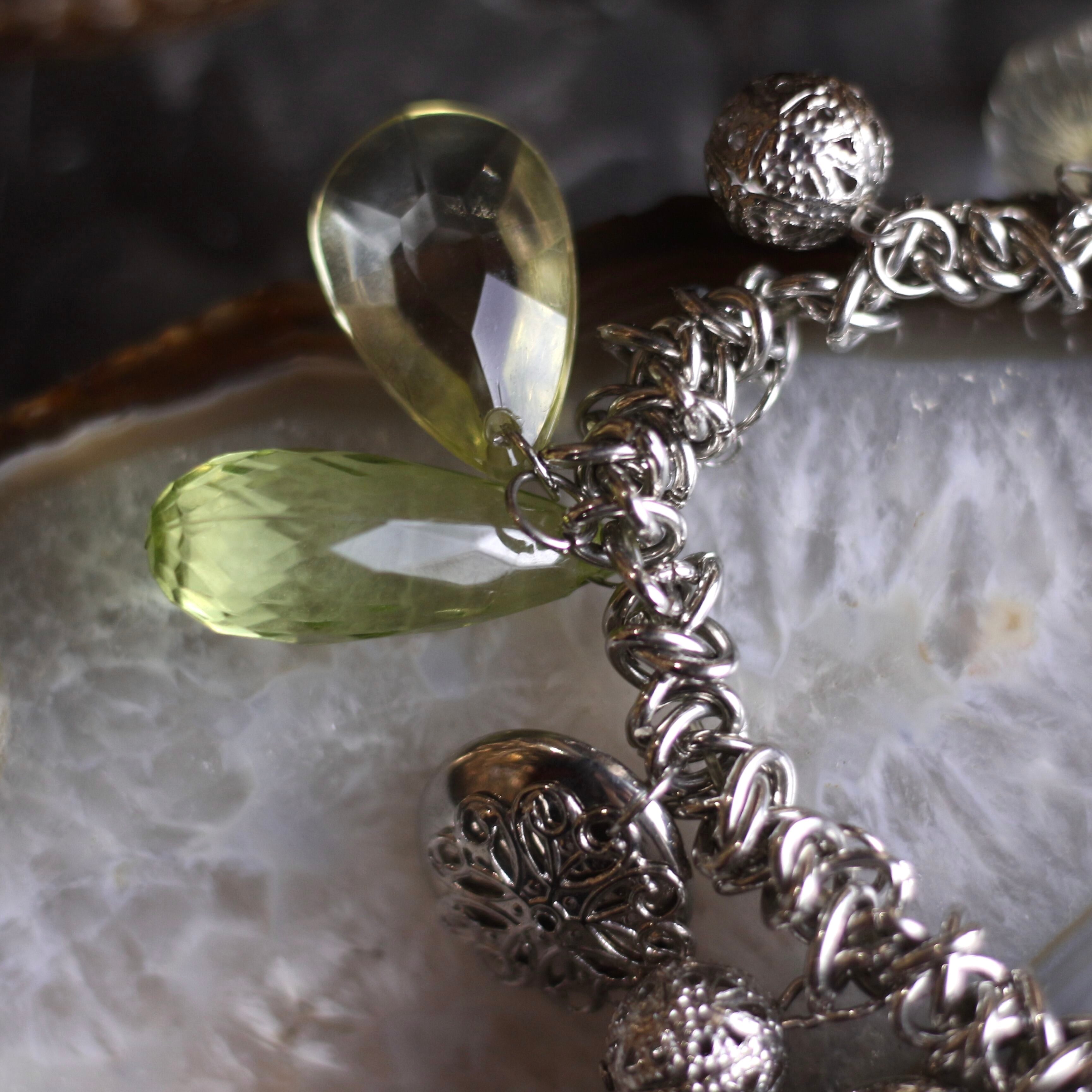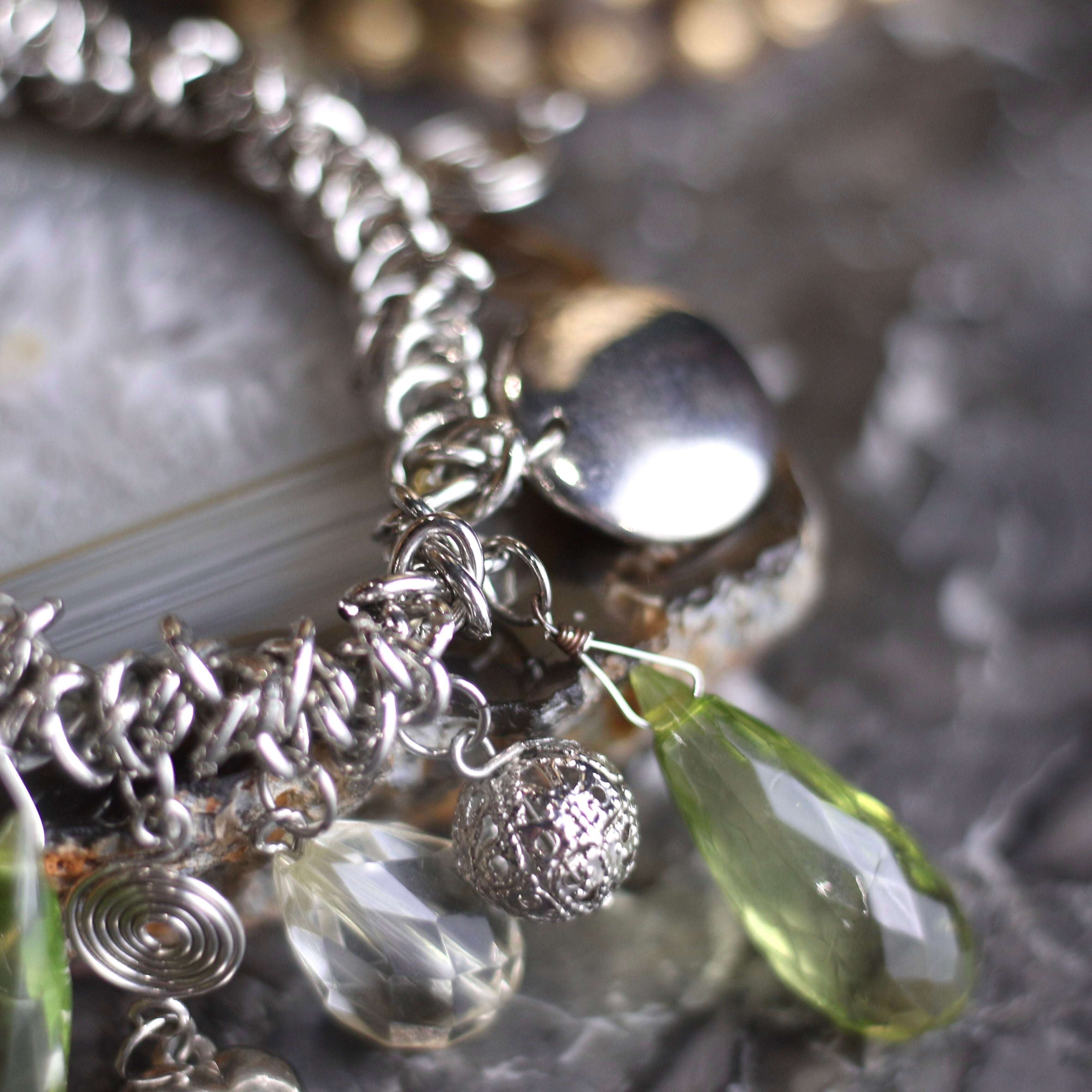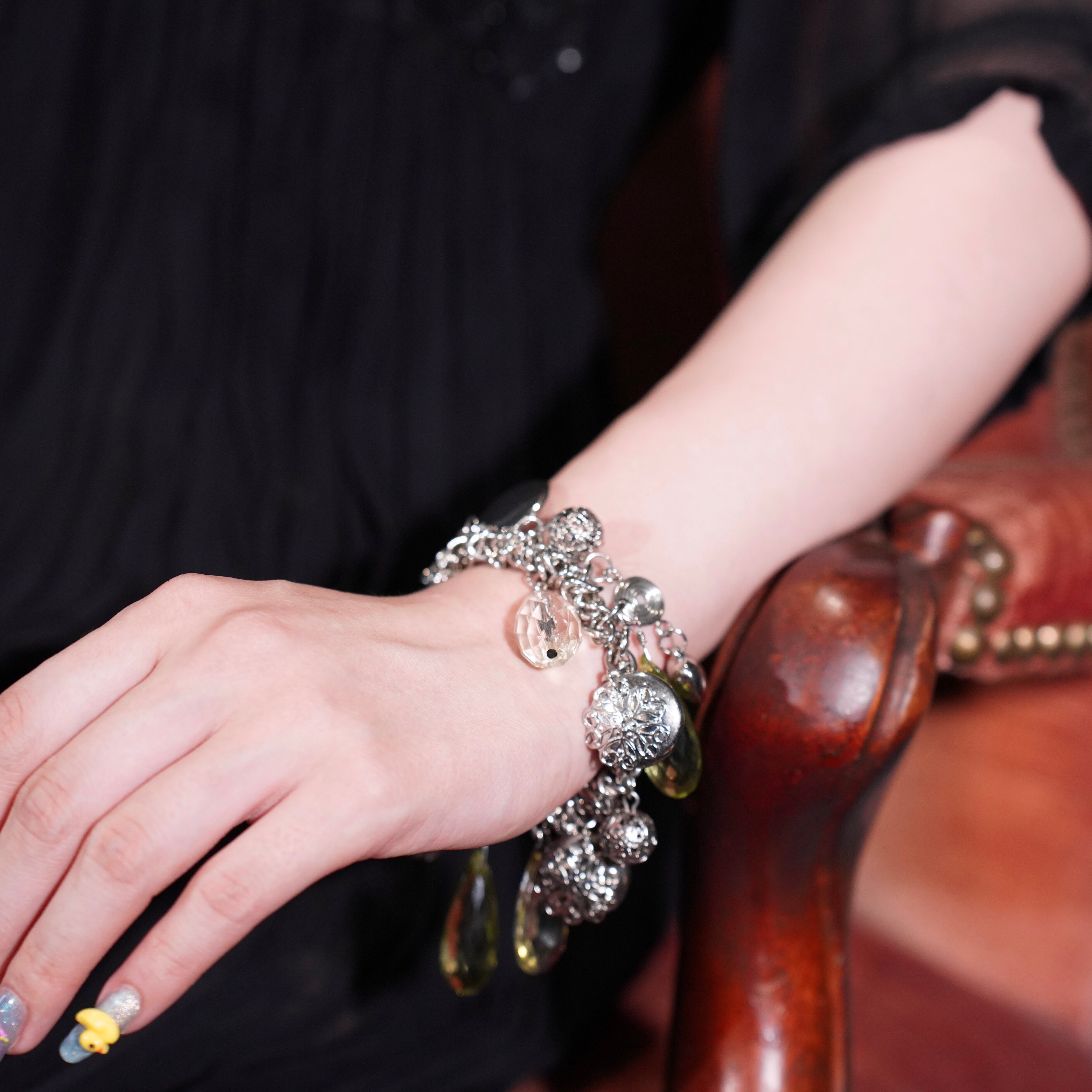 USA VINTAGE CLEAR GRASS CHARM DESIGN CHAIN BRACELET/アメリカ古着クリアガラスチャームデザインチェーンブレスレット