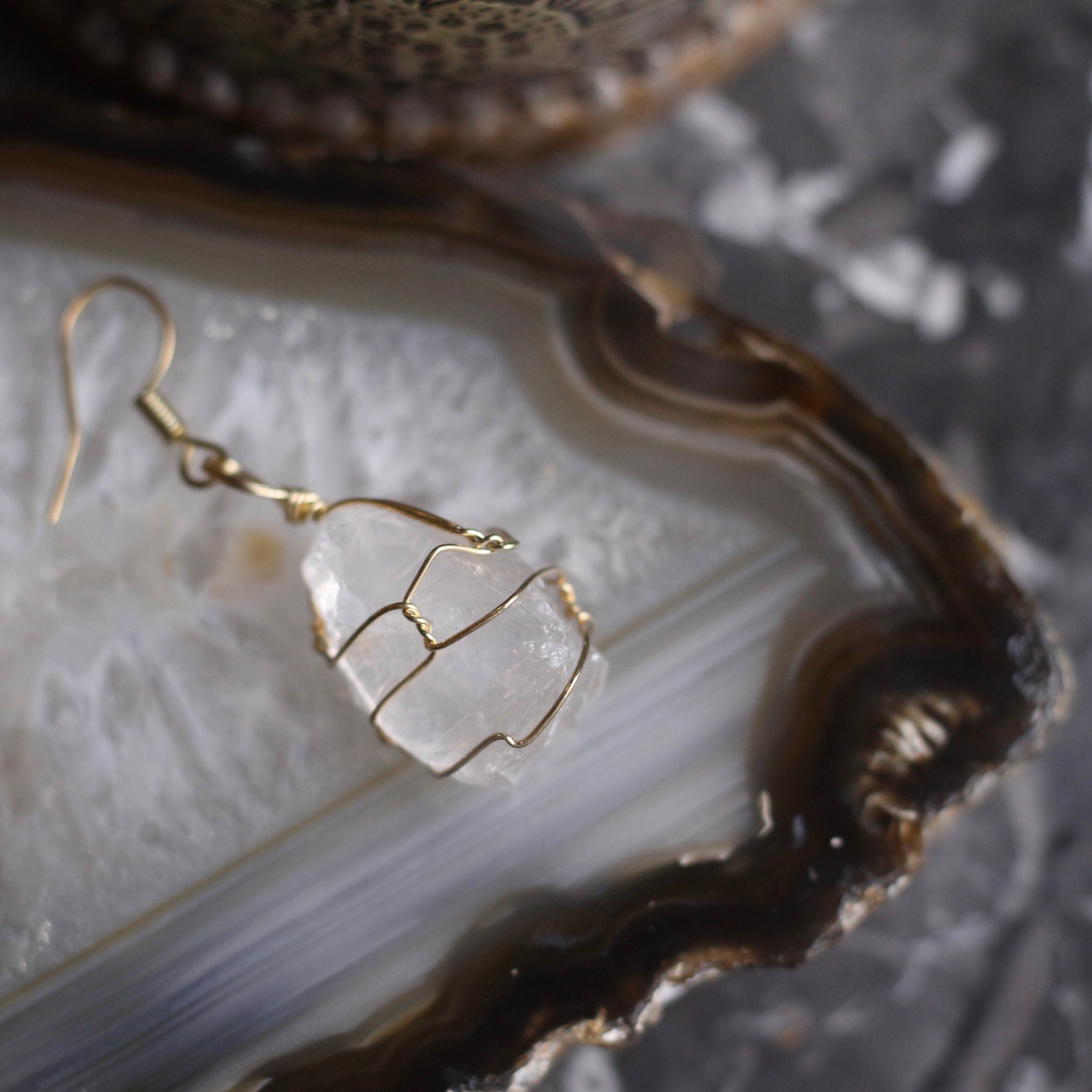 USA VINTAGE CLEAR STONE SWING DESIGN EARRING/アメリカ古着クリアストーンぶら下がりデザインピアス