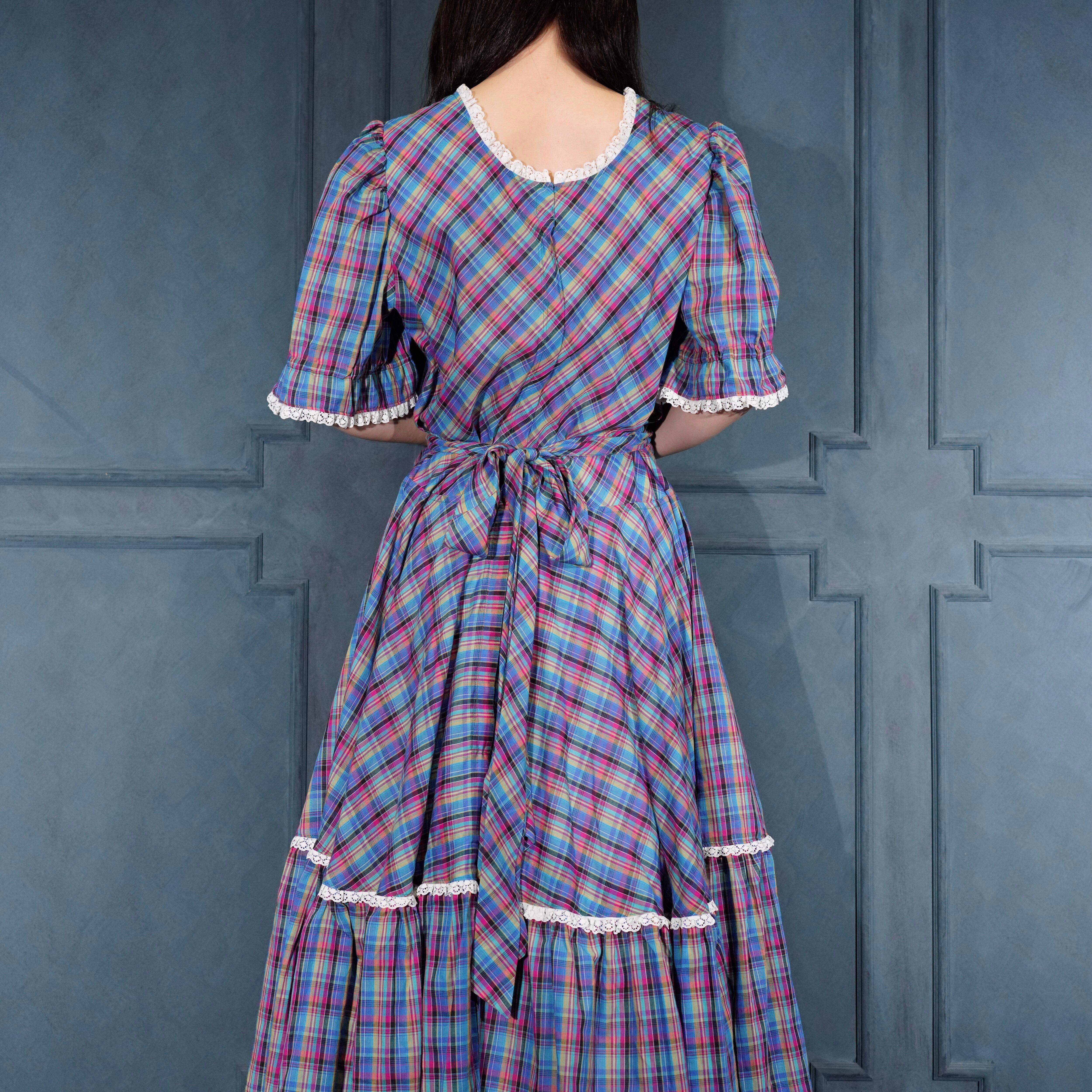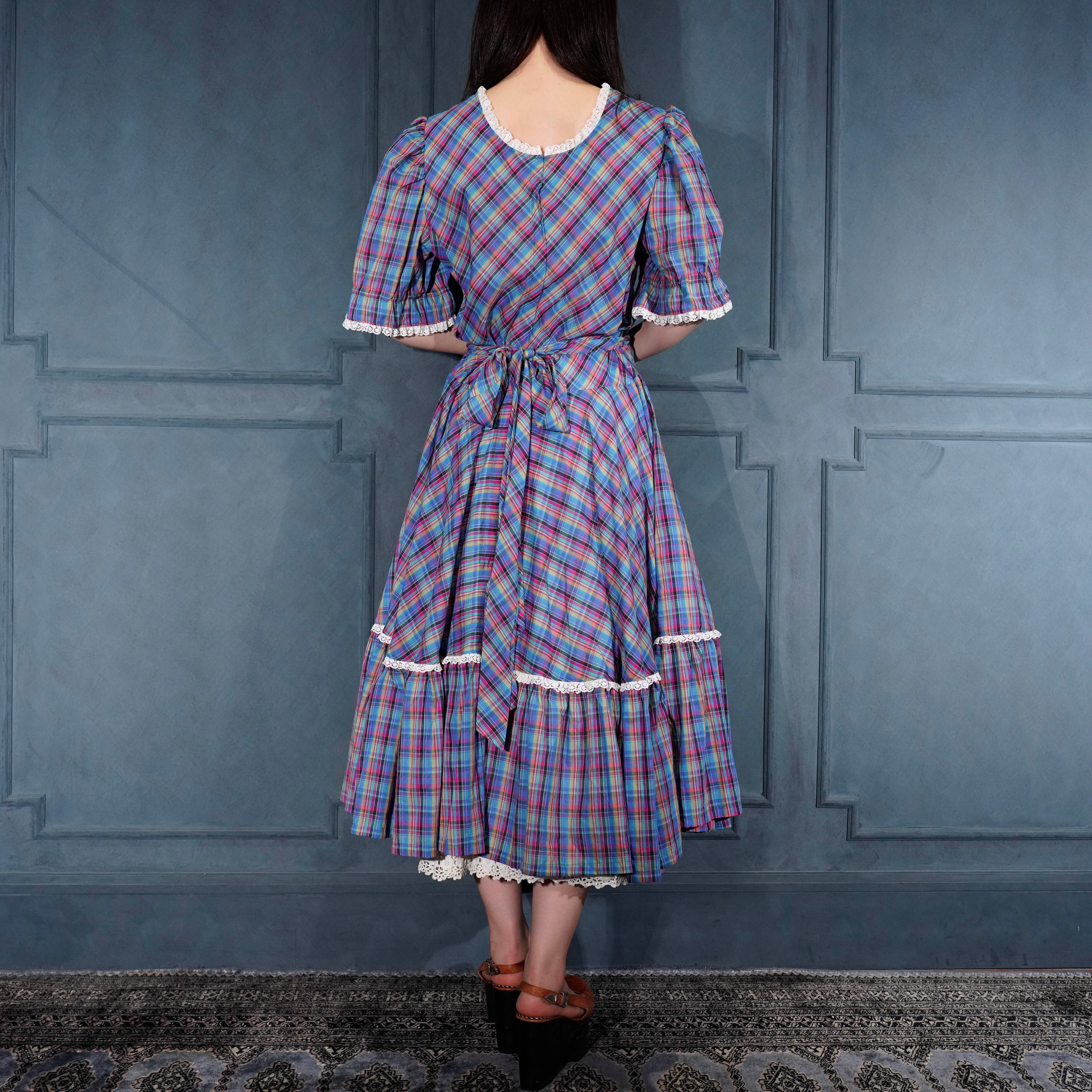 *SPECIAL ITEM* 60's~70's USA VINTAGE CHECK PATTERNED BACK RIBBON DESIGN ONE PIECE/60年代~70年代アメリカ古着チェック柄バックリボンデザインワンピース