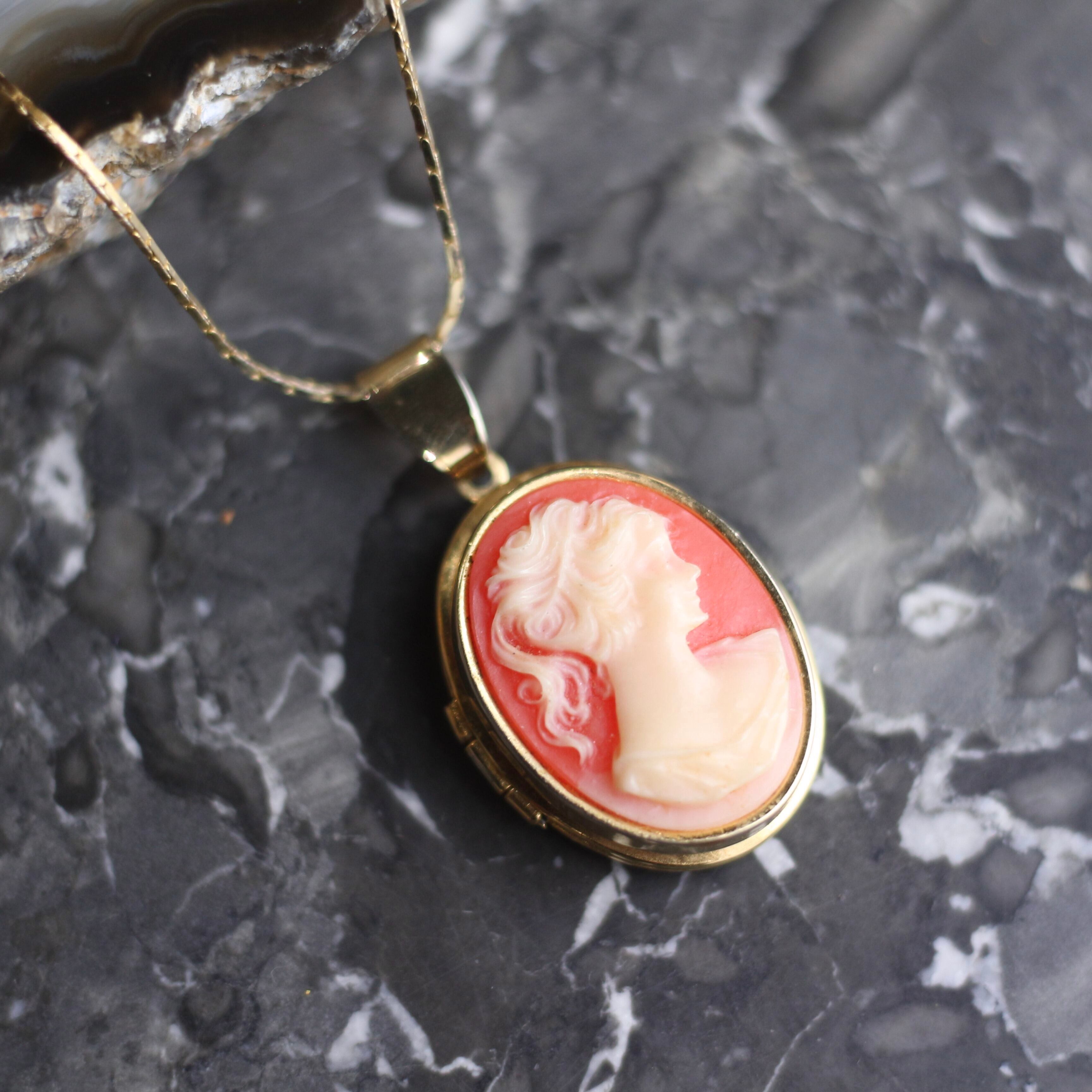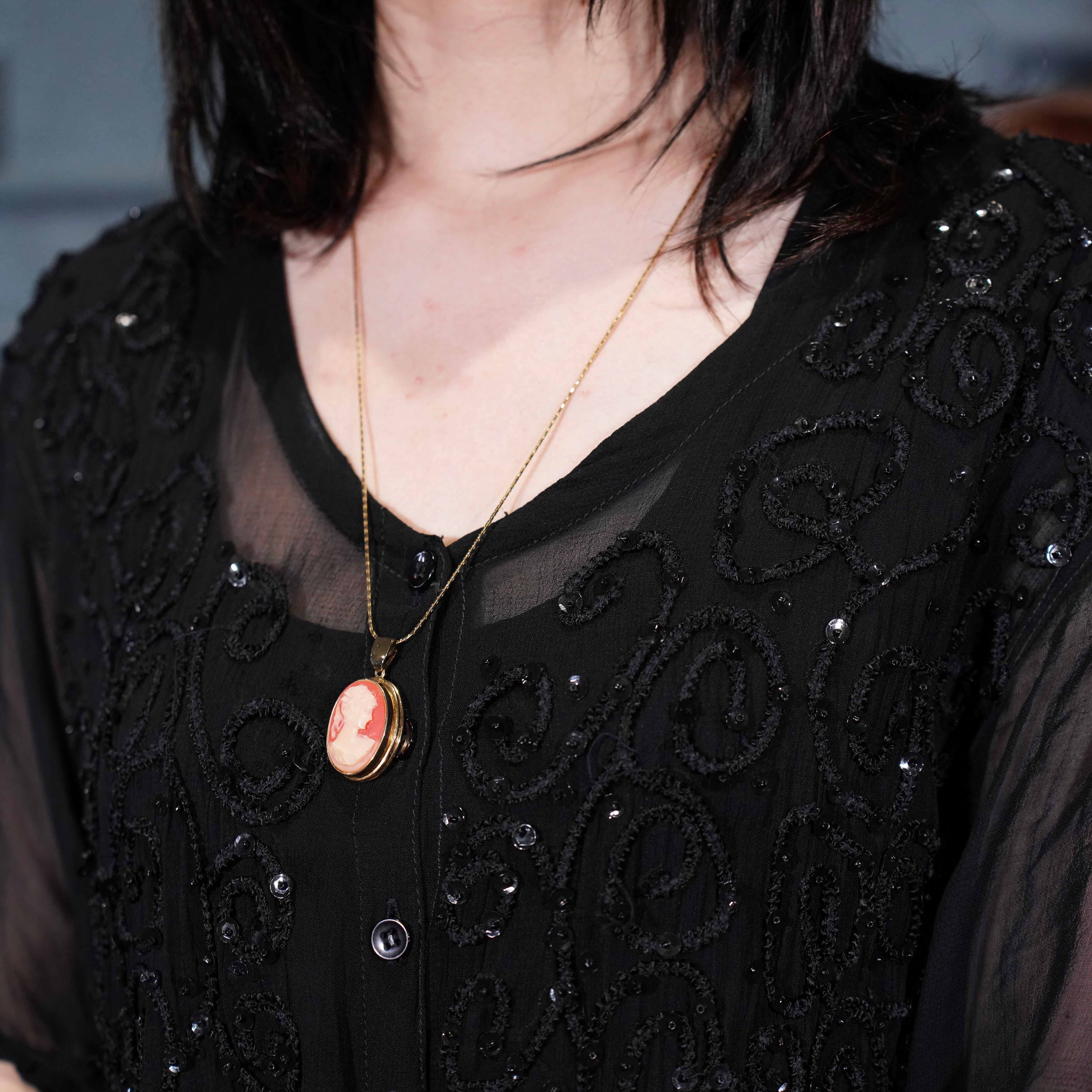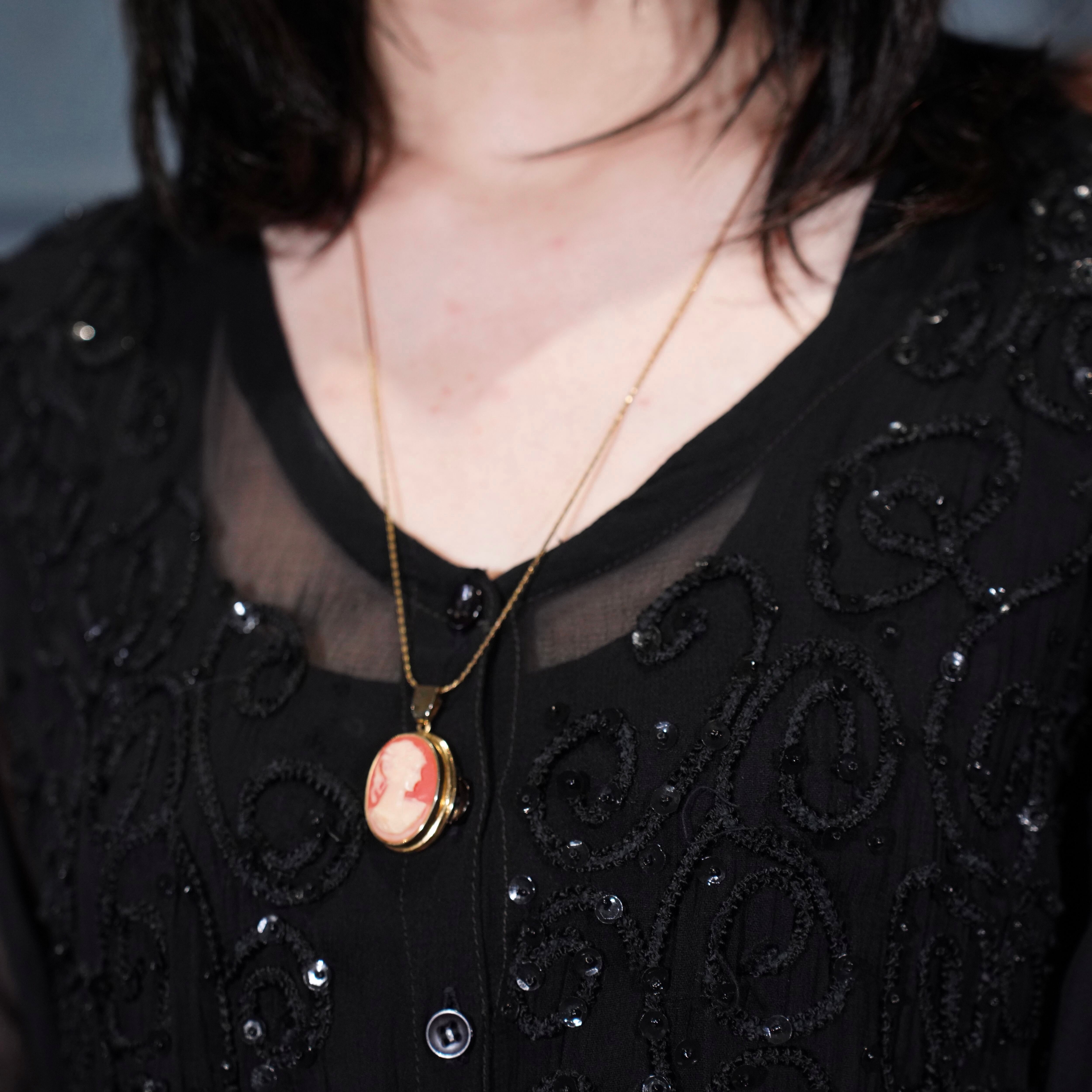 USA VINTAGE CAMEO DESIGN ROCKET PENDANT NECKLACE/アメリカ古着カメオデザインロケットペンダントネックレス