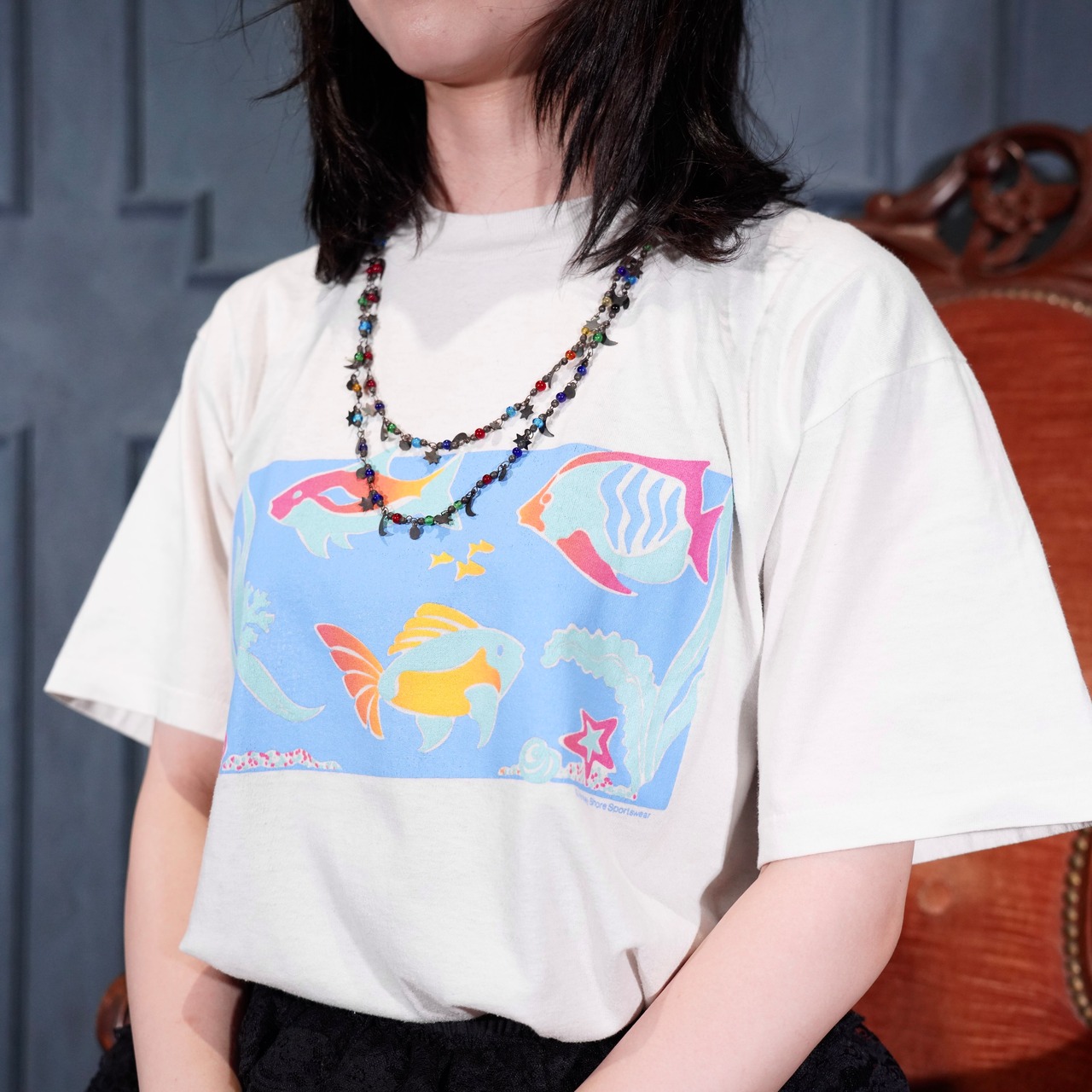USA VINTAGE COLORFUL BEAD MOON&STAR DESIGN NECKLACE/アメリカ古着カラフルビーズ月と星デザインネックレス