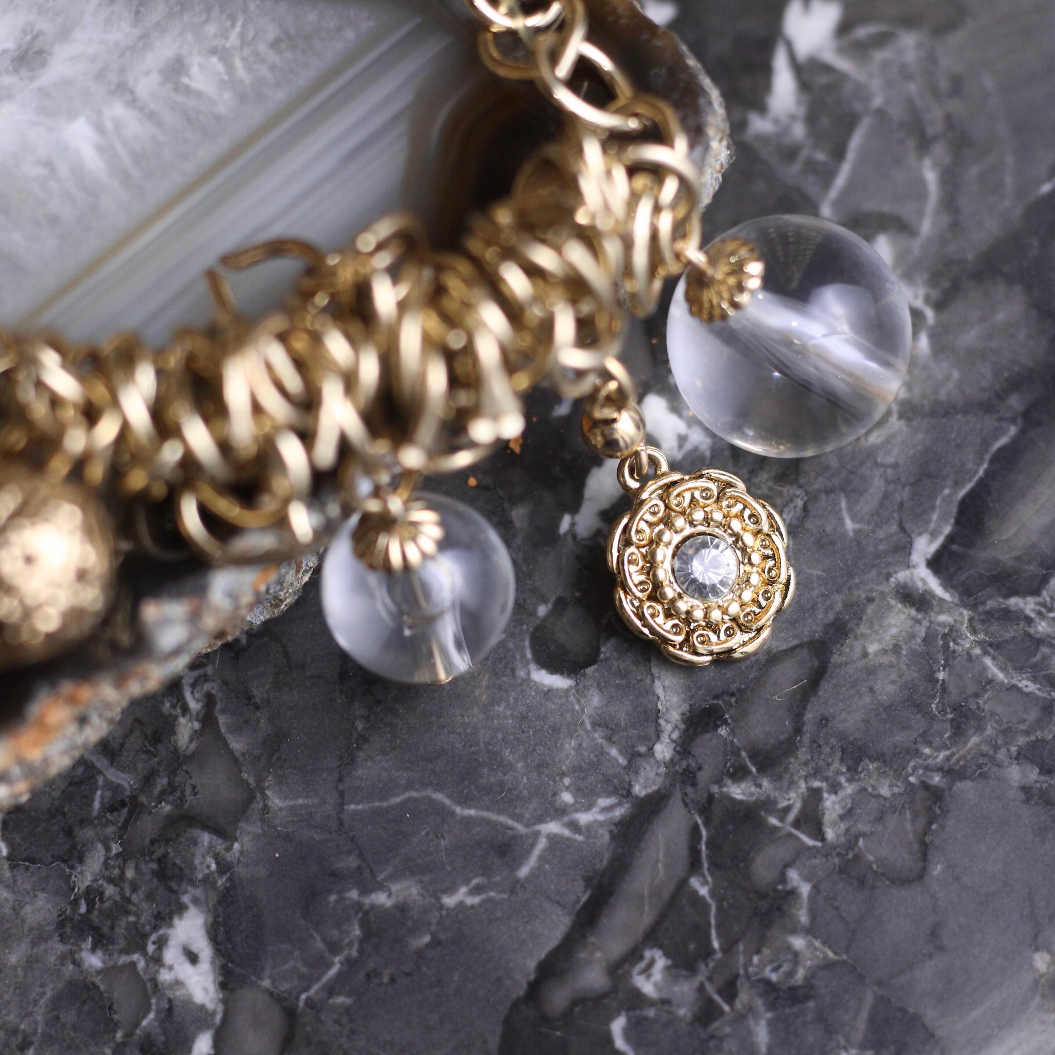 USA VINTAGE CLEAR GLASS CHARM DESIGN CHAIN BRACELET/アメリカ古着クリアガラスチャームデザインチェーンブレスレット