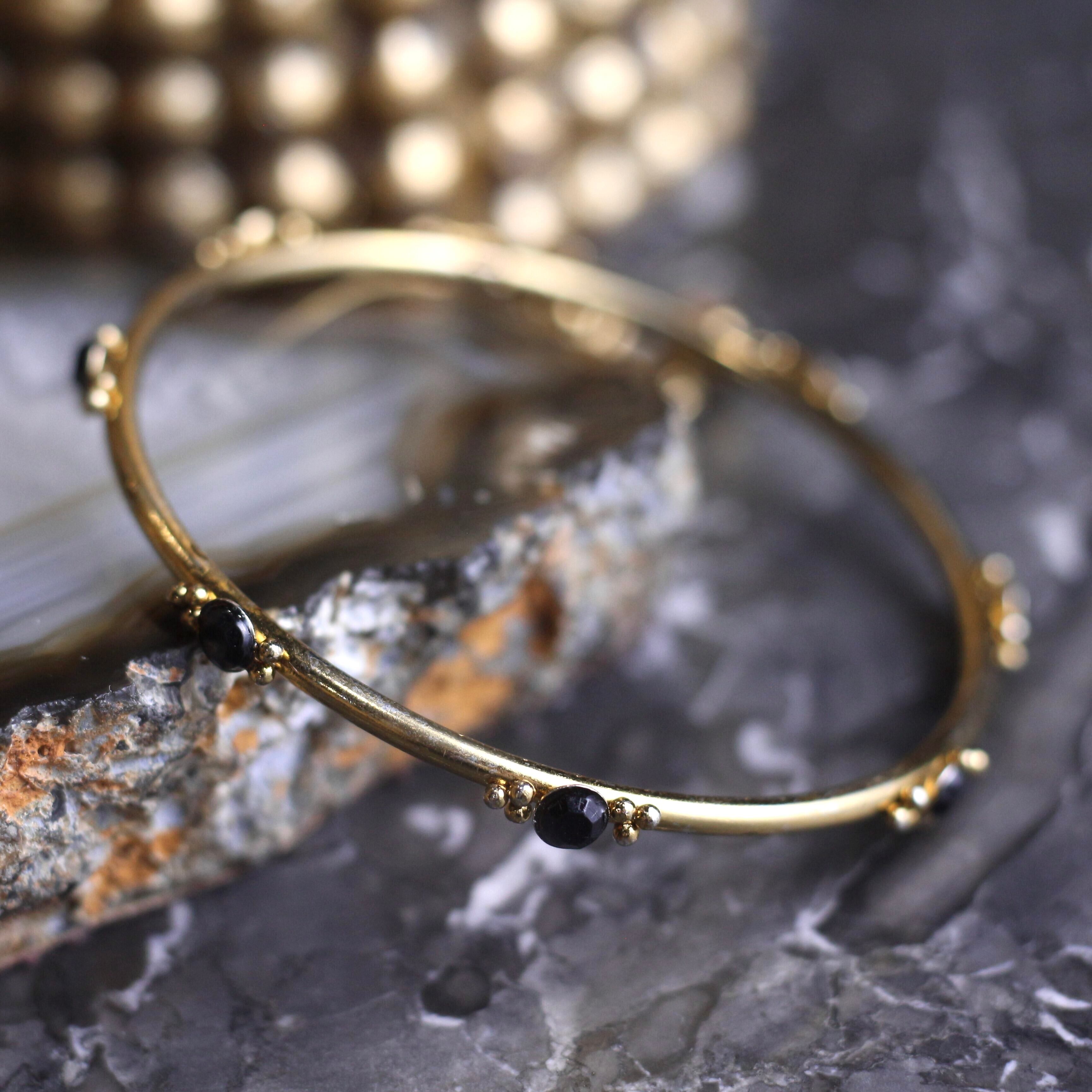 USA VINTAGE BLACK STONE CHARM DESIGN METAL BANGLE/アメリカ古着ブラックストーンチャームデザインメタルバングル