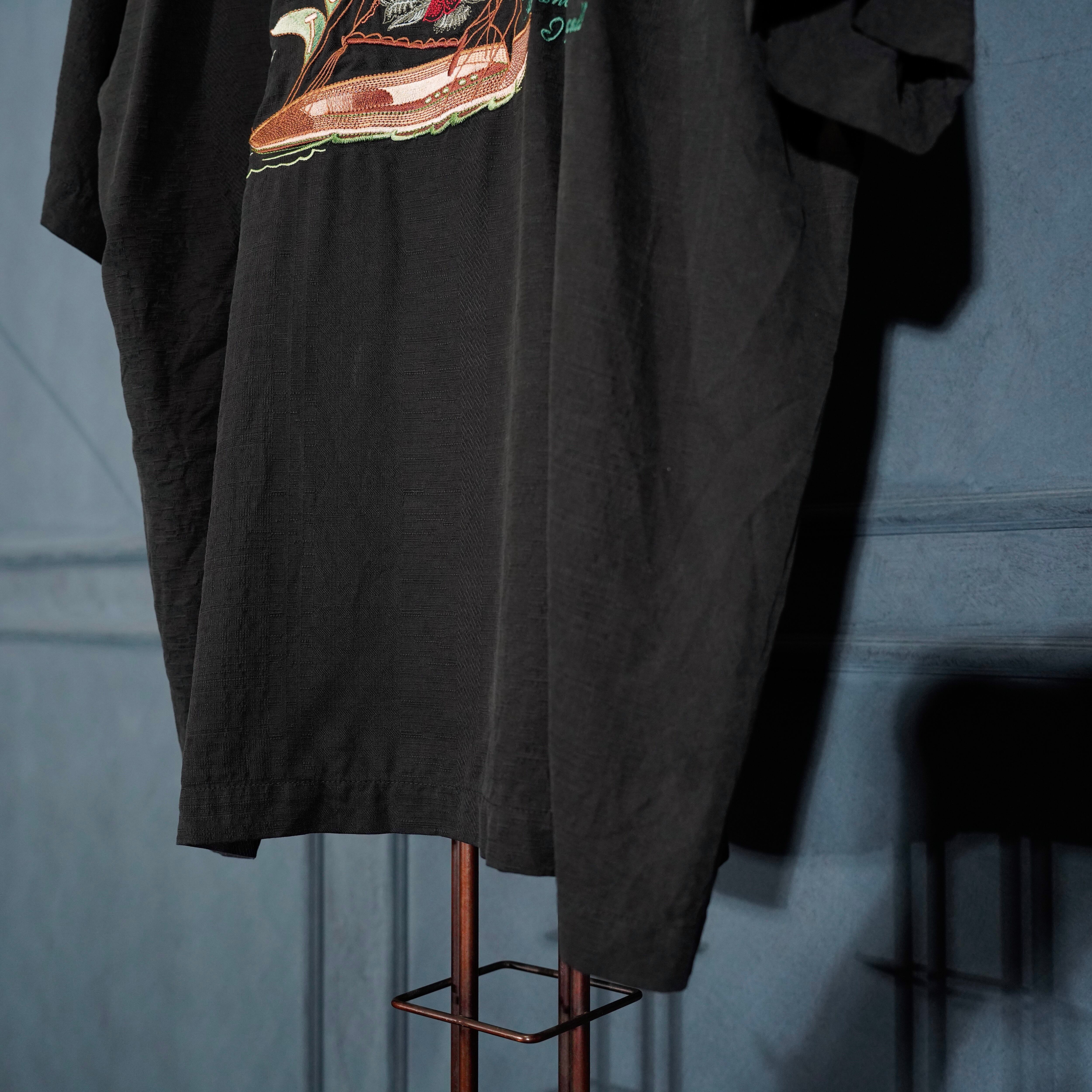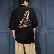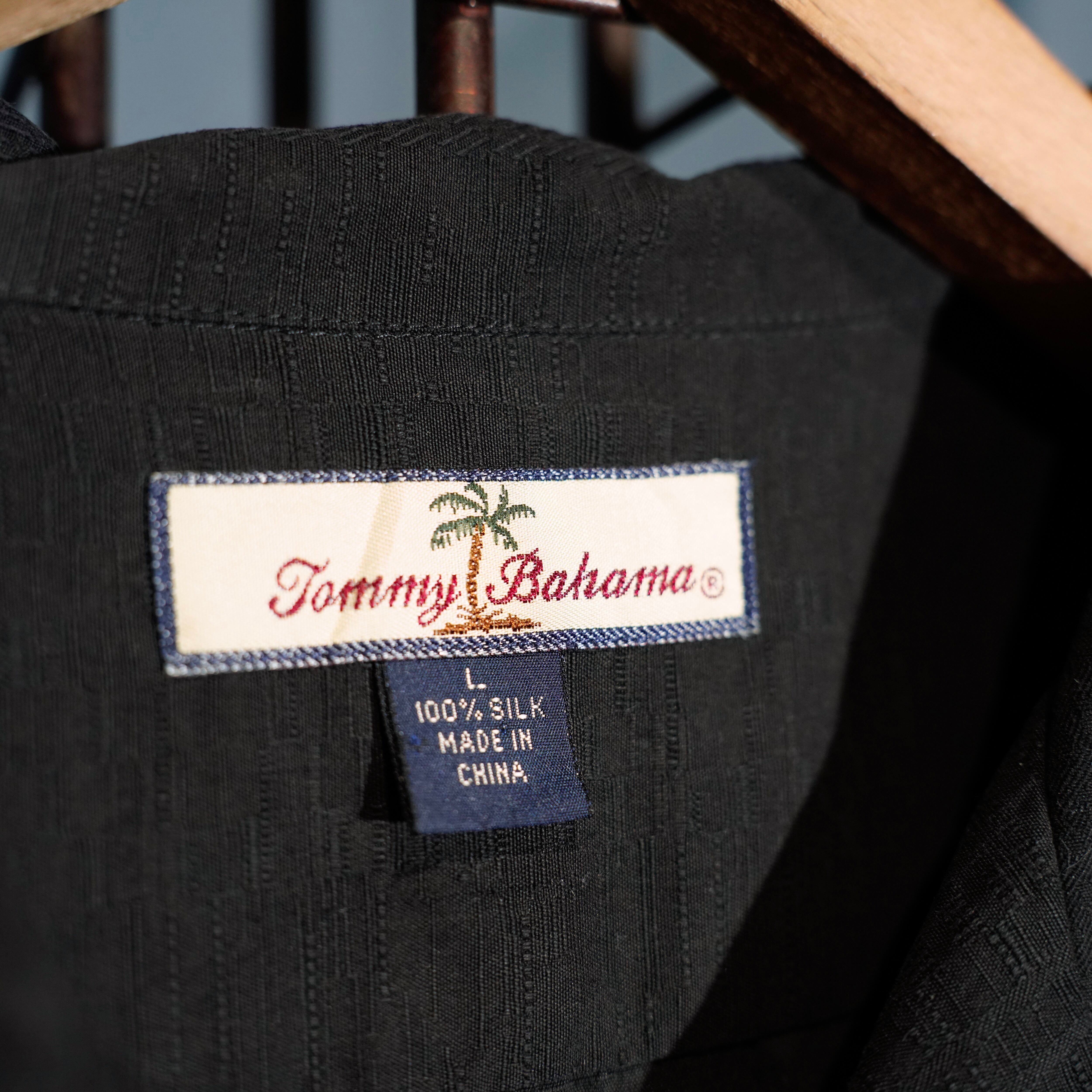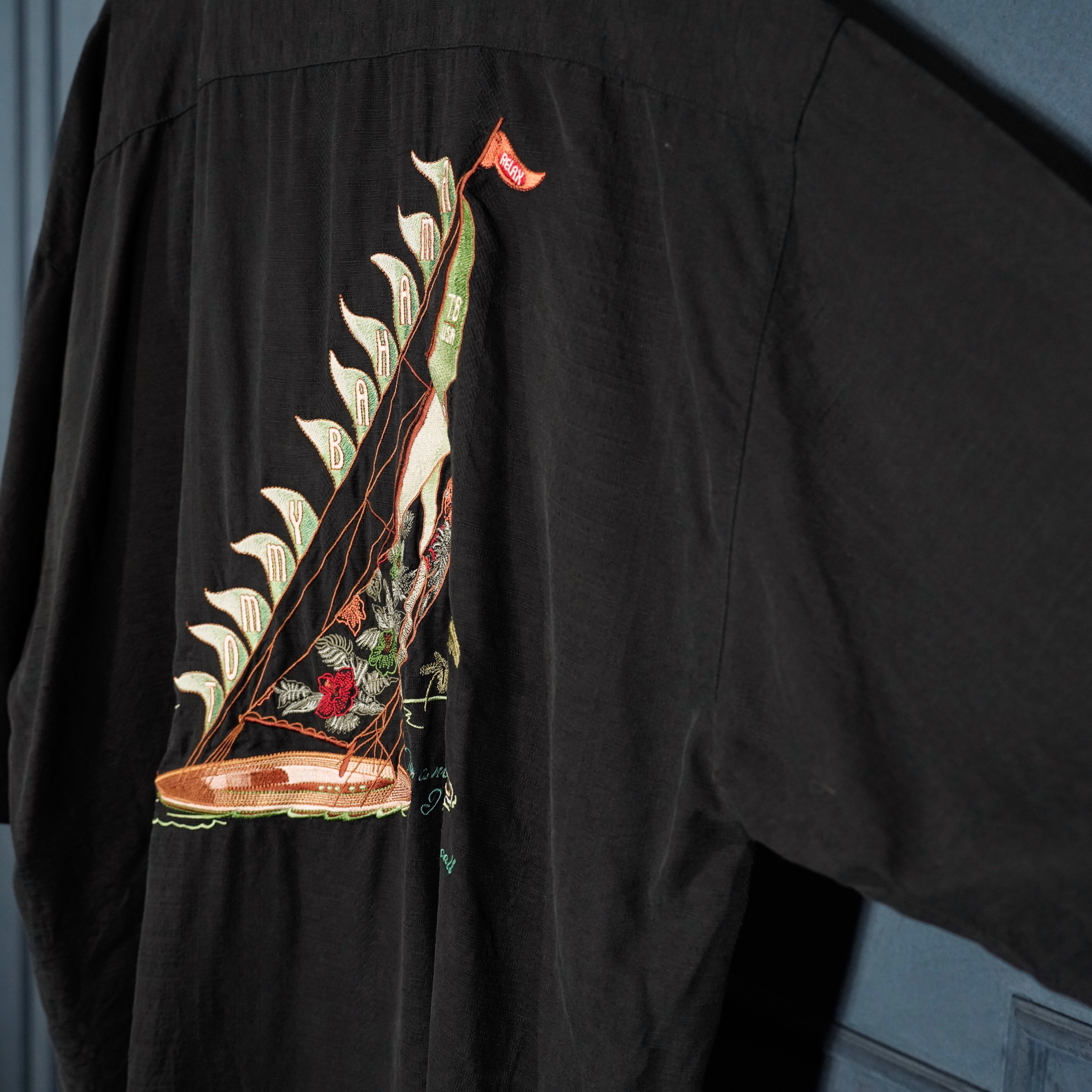 USA VINTAGE Tommy Bahama OPEN COLLAR BOAT EMBROIDERY DESIGN HALF SLEEVE SILK SHIRT/アメリカ古着オープンカラーボート刺繍デザイン半袖シルクシャツ