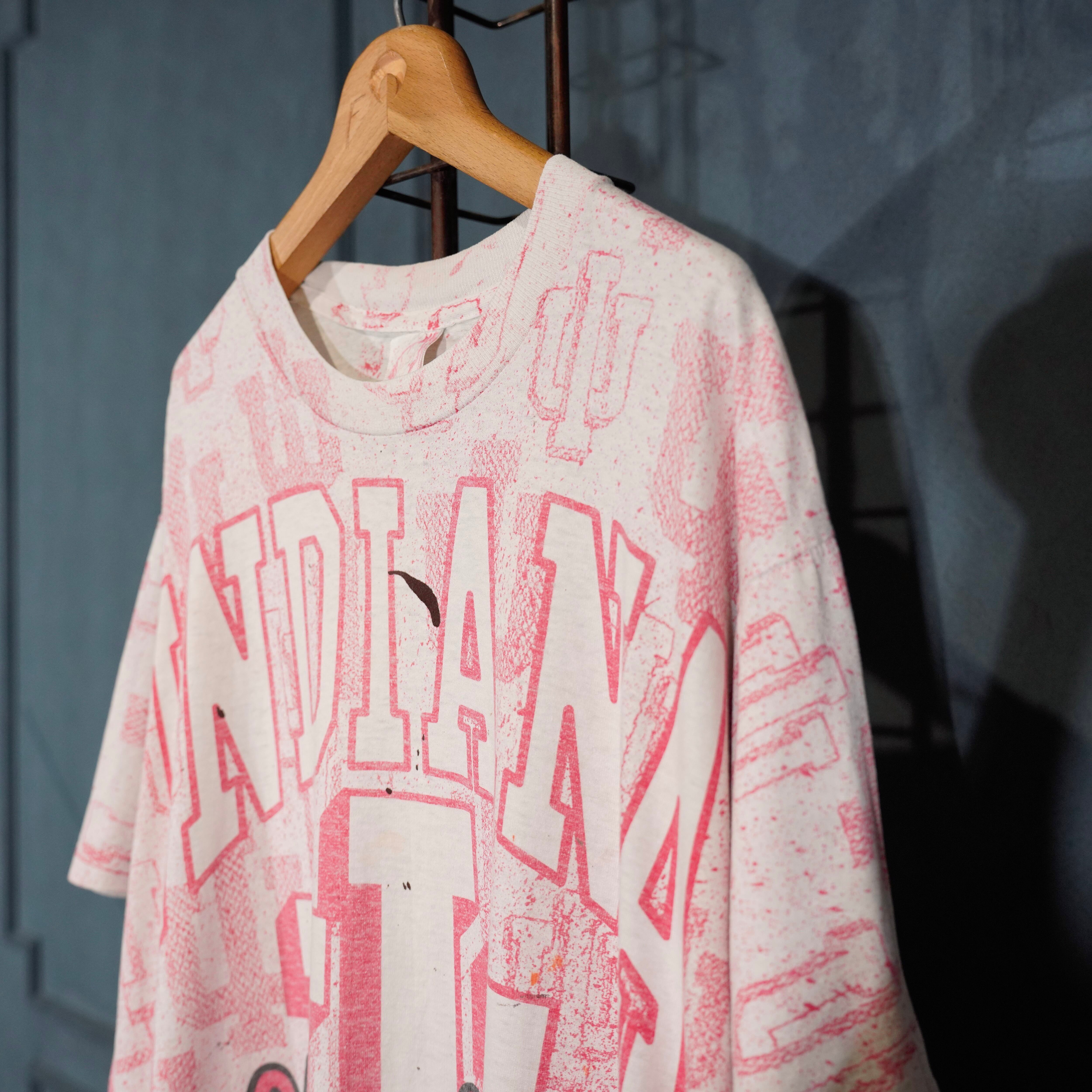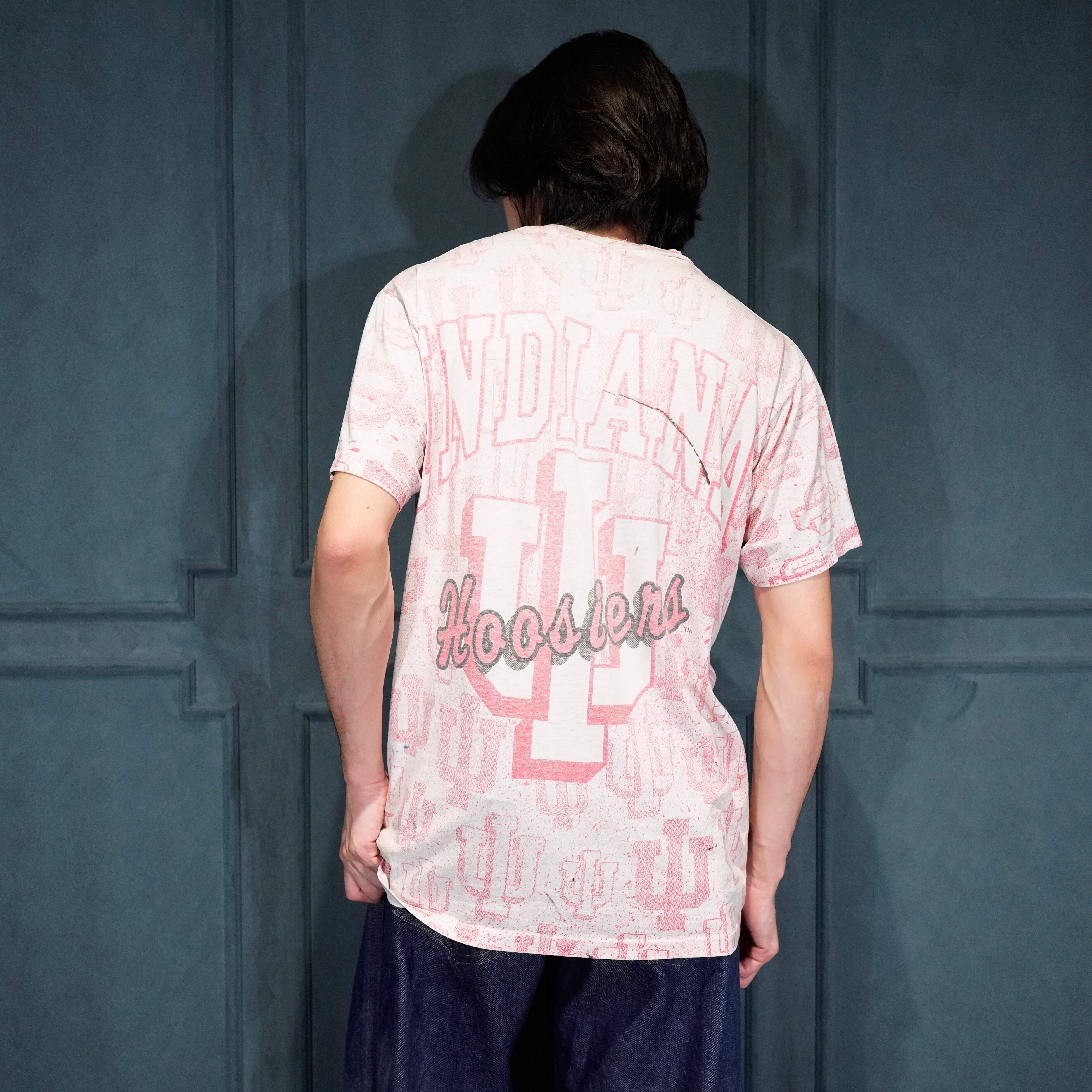 90's USA VINTAGE INDIANA HOOSIERS COLLEGE PRINT PAINTED DESIGN/90年代アメリカ古着カレッジプリントペイントデザインTシャツ