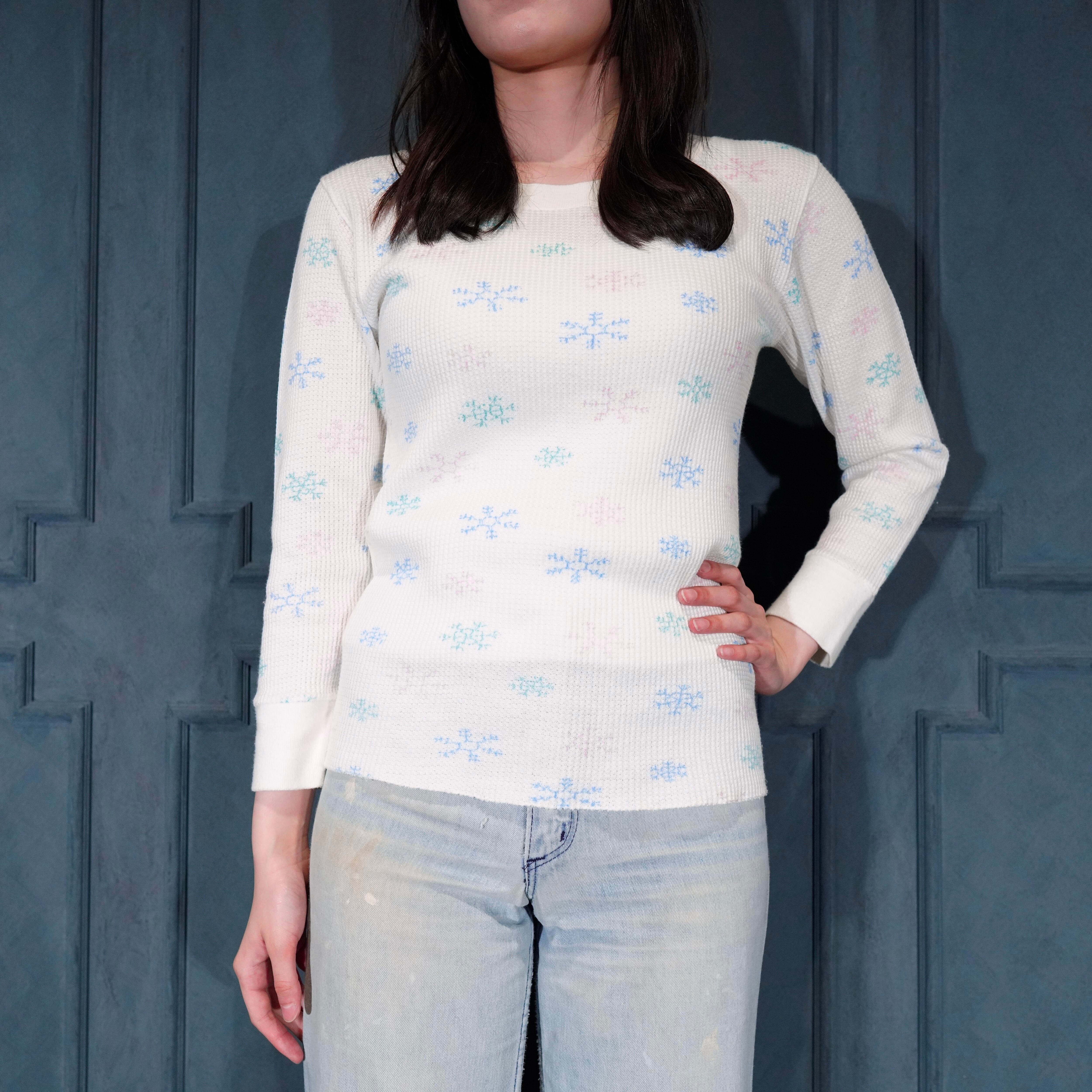 70's USA VINTAGE Kmart SNOWFLAKE PATTERNED THERMAL CUT&SEWN/70年代アメリカ古着雪の結晶柄サーマルカットソー