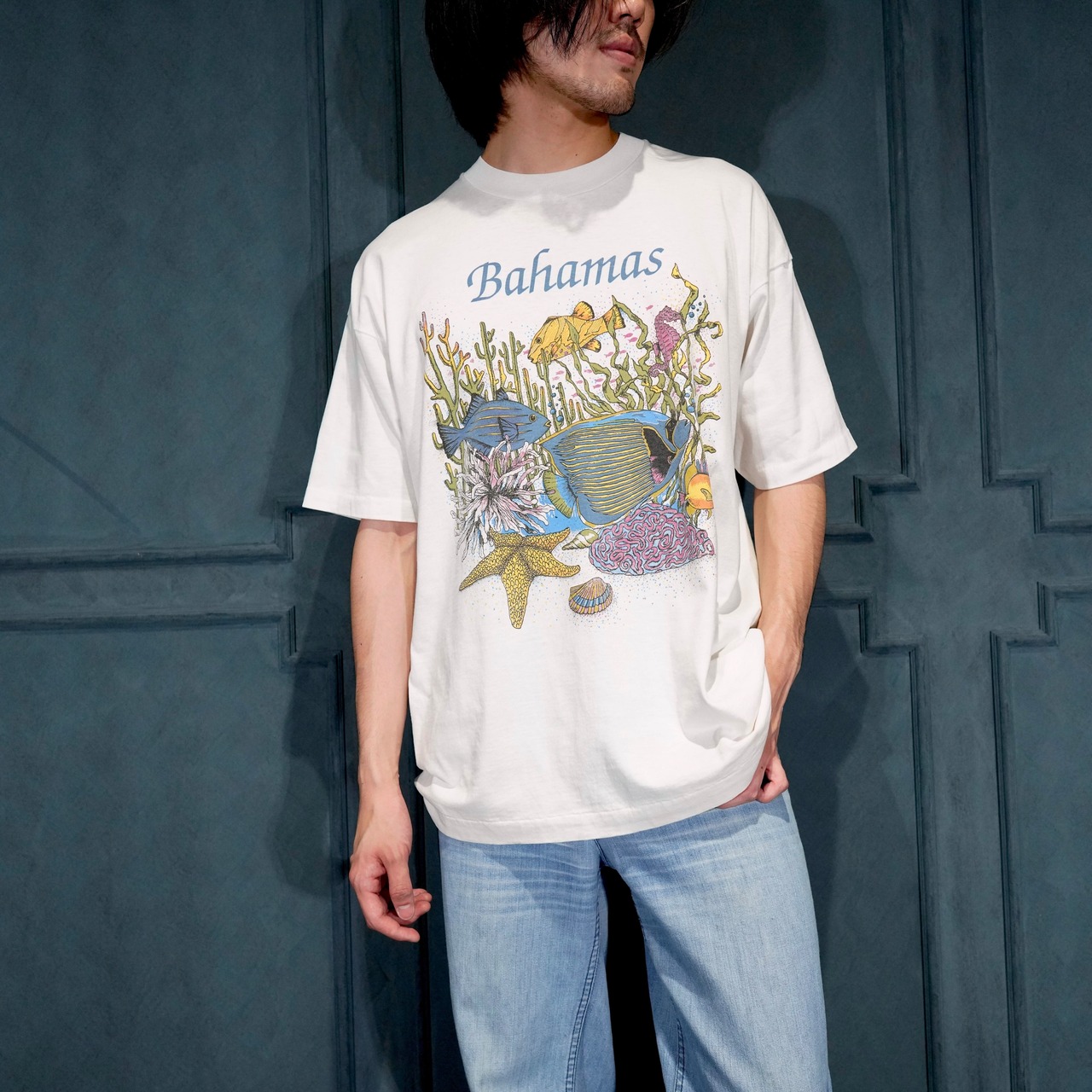 90's USA VINTAGE FRUIT OF THE LOOM BAHAMA FISH PRINT DESIGN T SHIRT/90年代アメリカ古着バハマお魚プリントデザインTシャツ