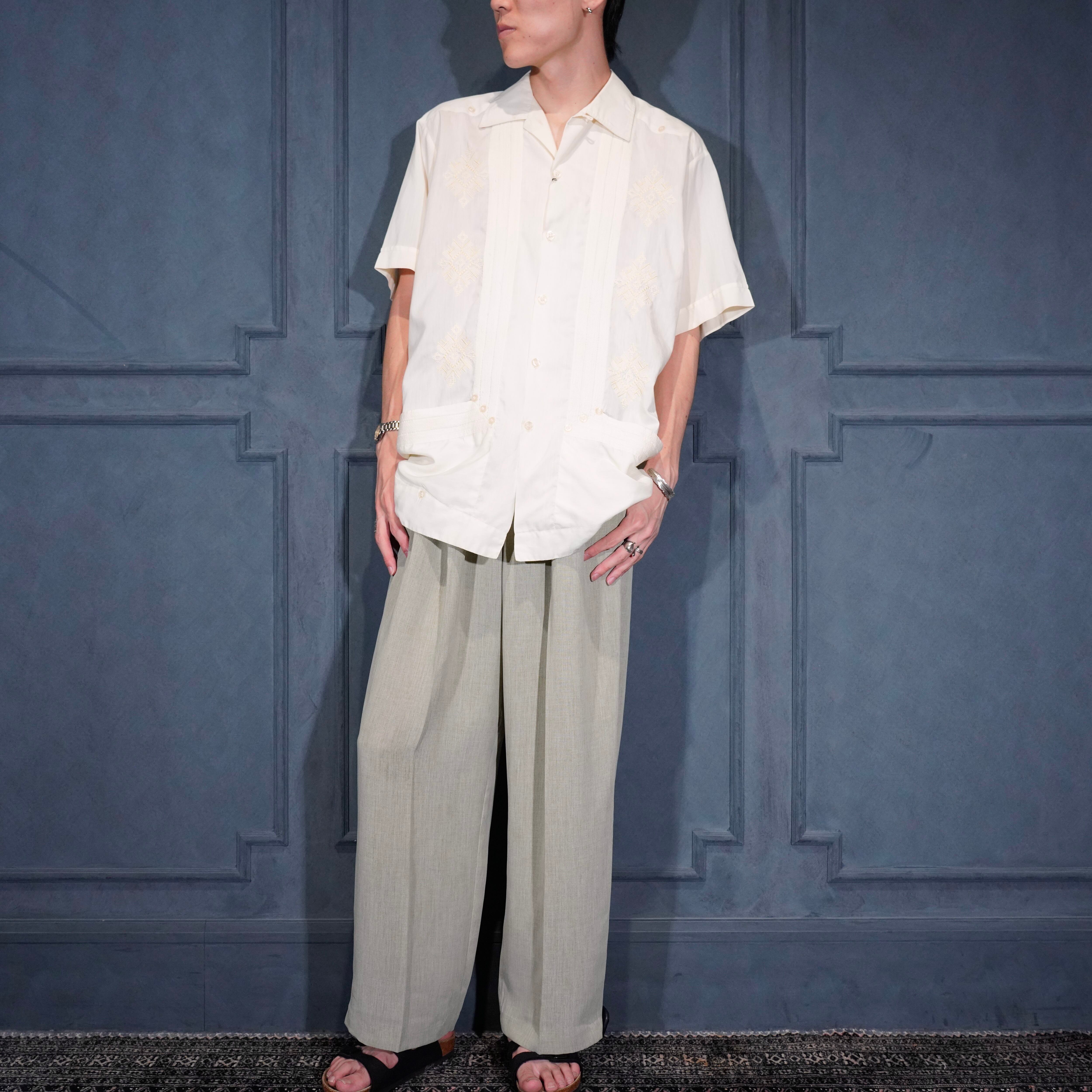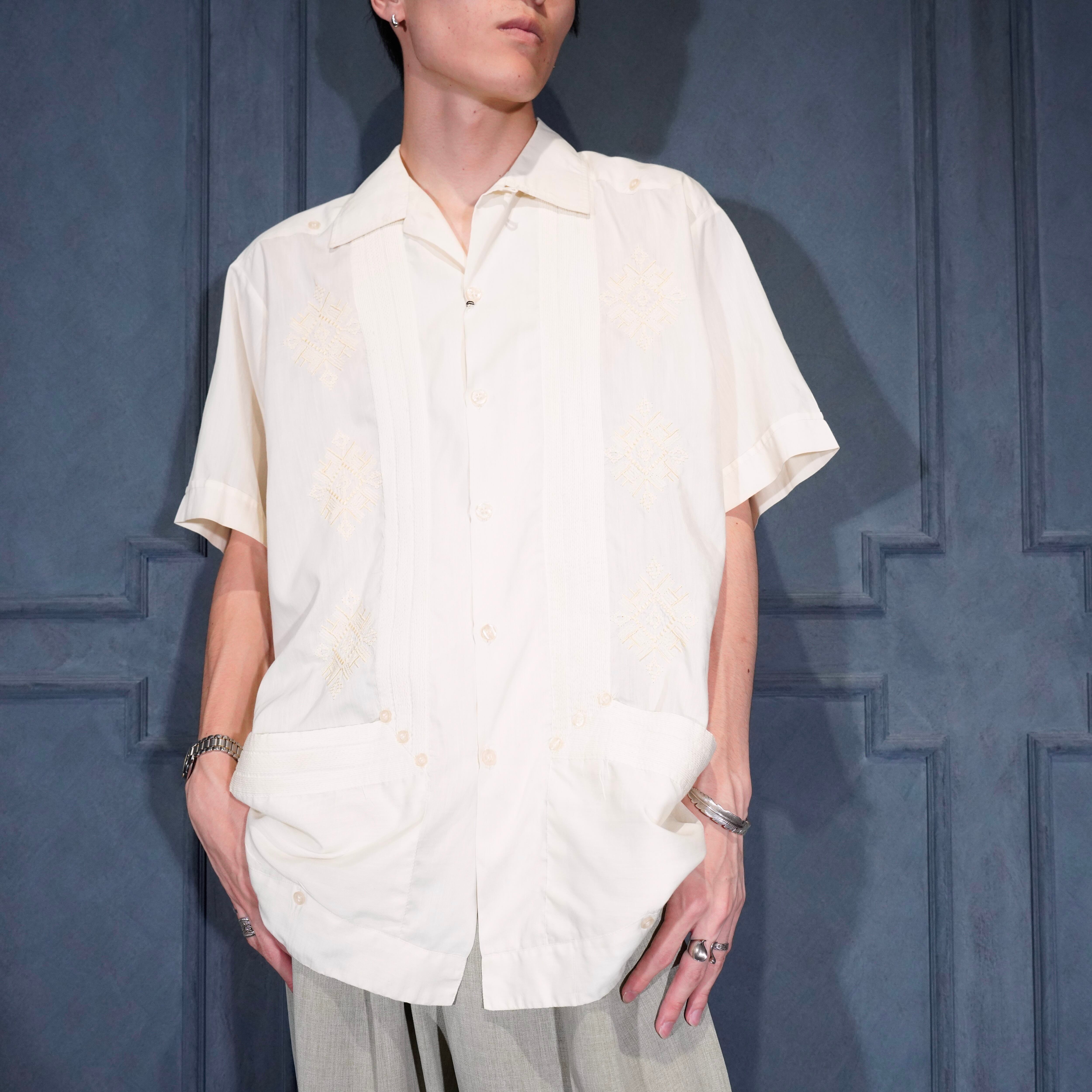 USA VINTAGE guaya teca EMBROIDERY DESIGN CUBA SHIRT/アメリカ古着刺繍デザインキューバシャツ