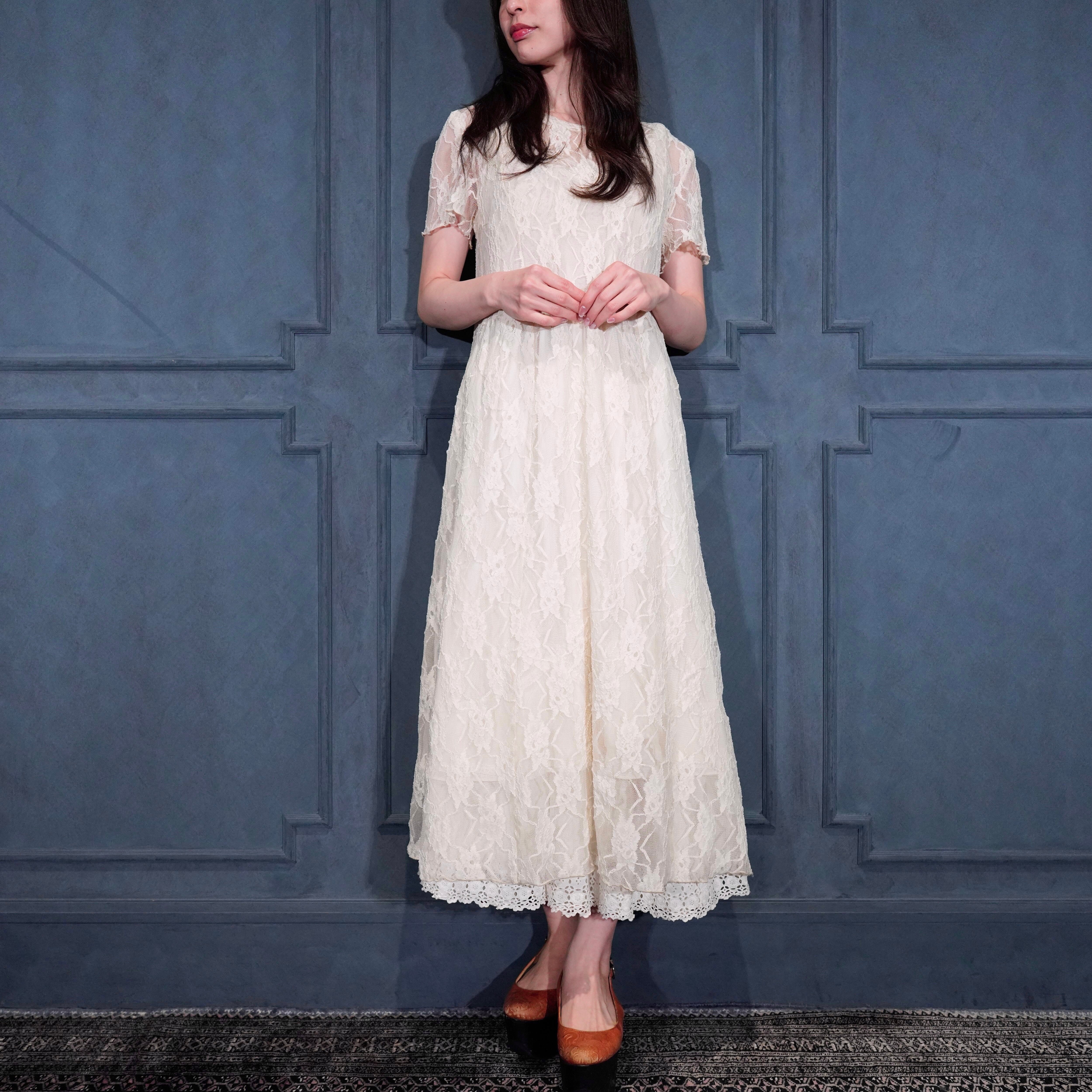 70's USA VINTAGE ALL LACE DESIGN DRESS ONE PIECE/70年代アメリカ古着総レースデザインドレスワンピース