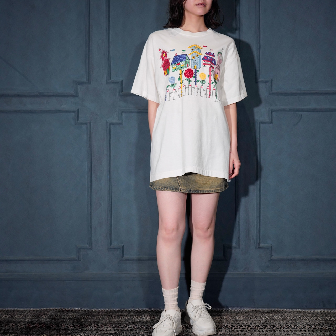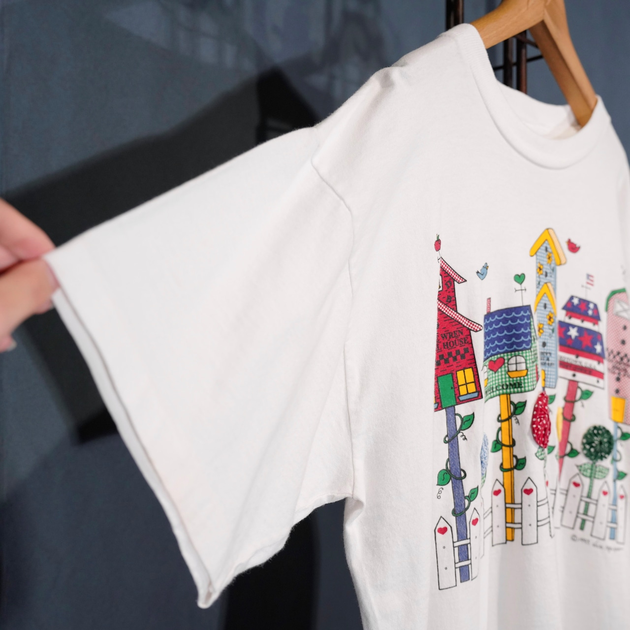 90's USA VINTAGE alore BIRD HOUSE PRINT DESIGN T SHIRT/90年代アメリカ古着鳥の巣箱プリントデザインTシャツ