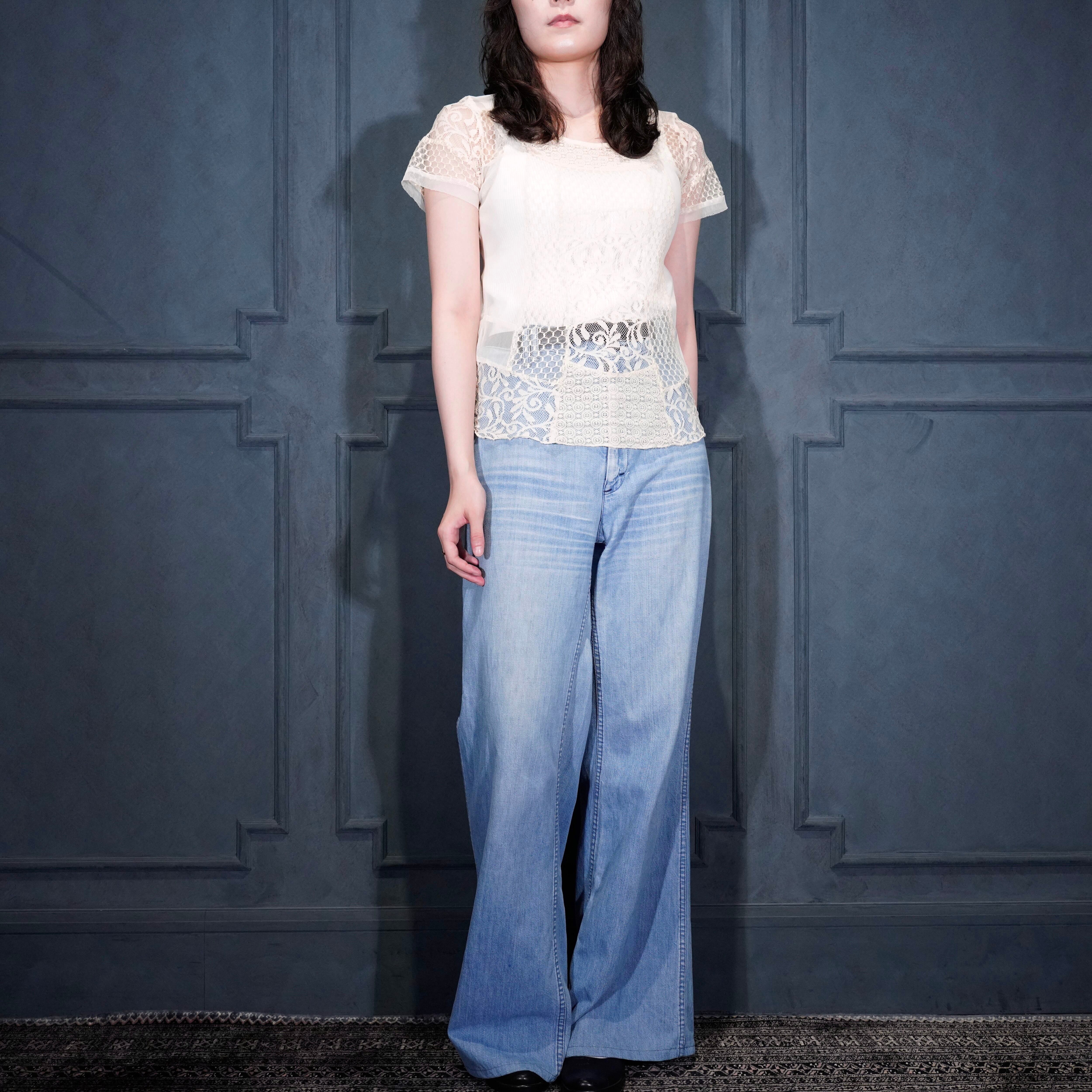 USA VINTAGE LACE SHEER DESIGN CUT&SEWN/アメリカ古着レースシアーデザインカットソー