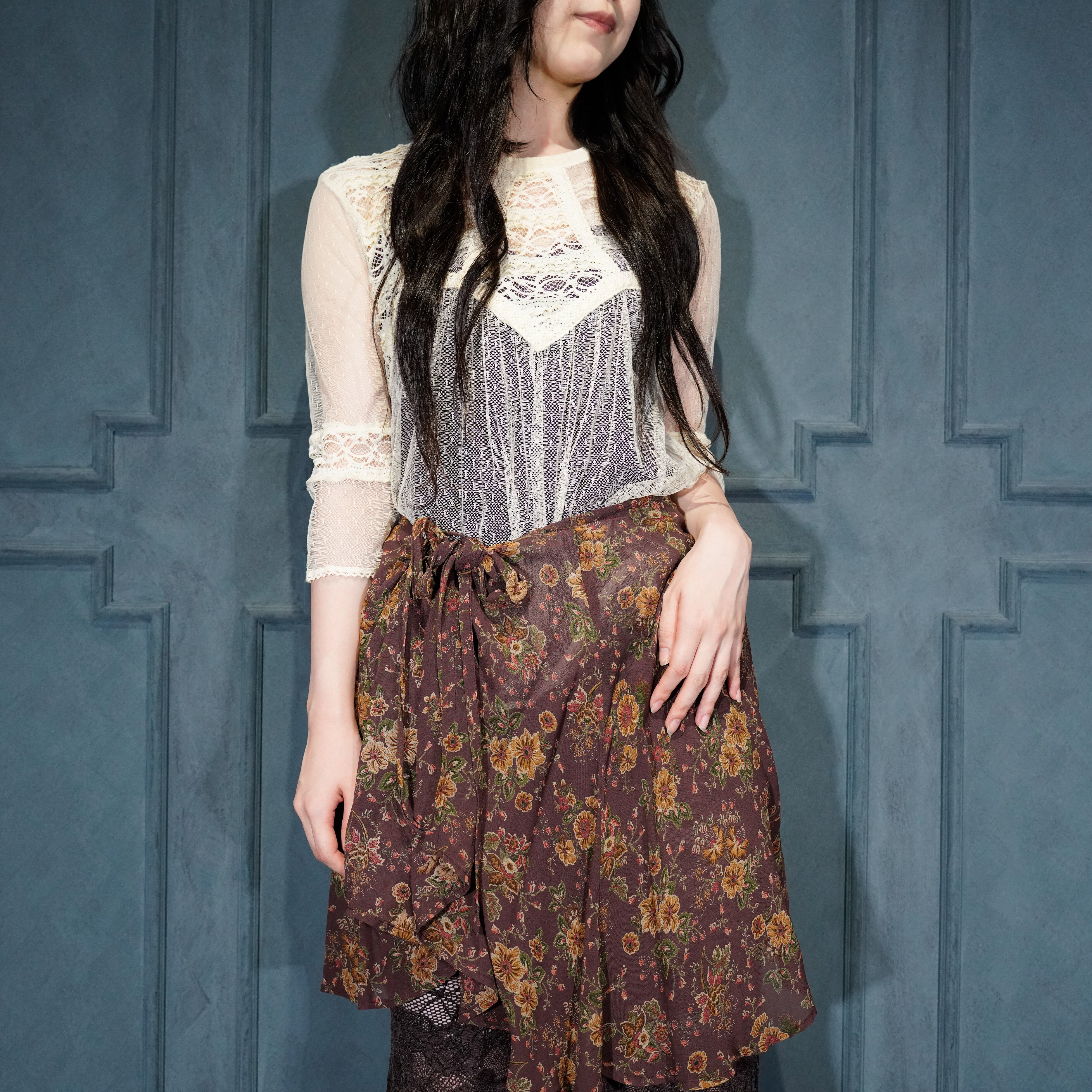 USA VINTAGE EXPRESS FLOWER PATTERNED RAP DESIGN SKIRT/アメリカ古着花柄ラップデザインスカート