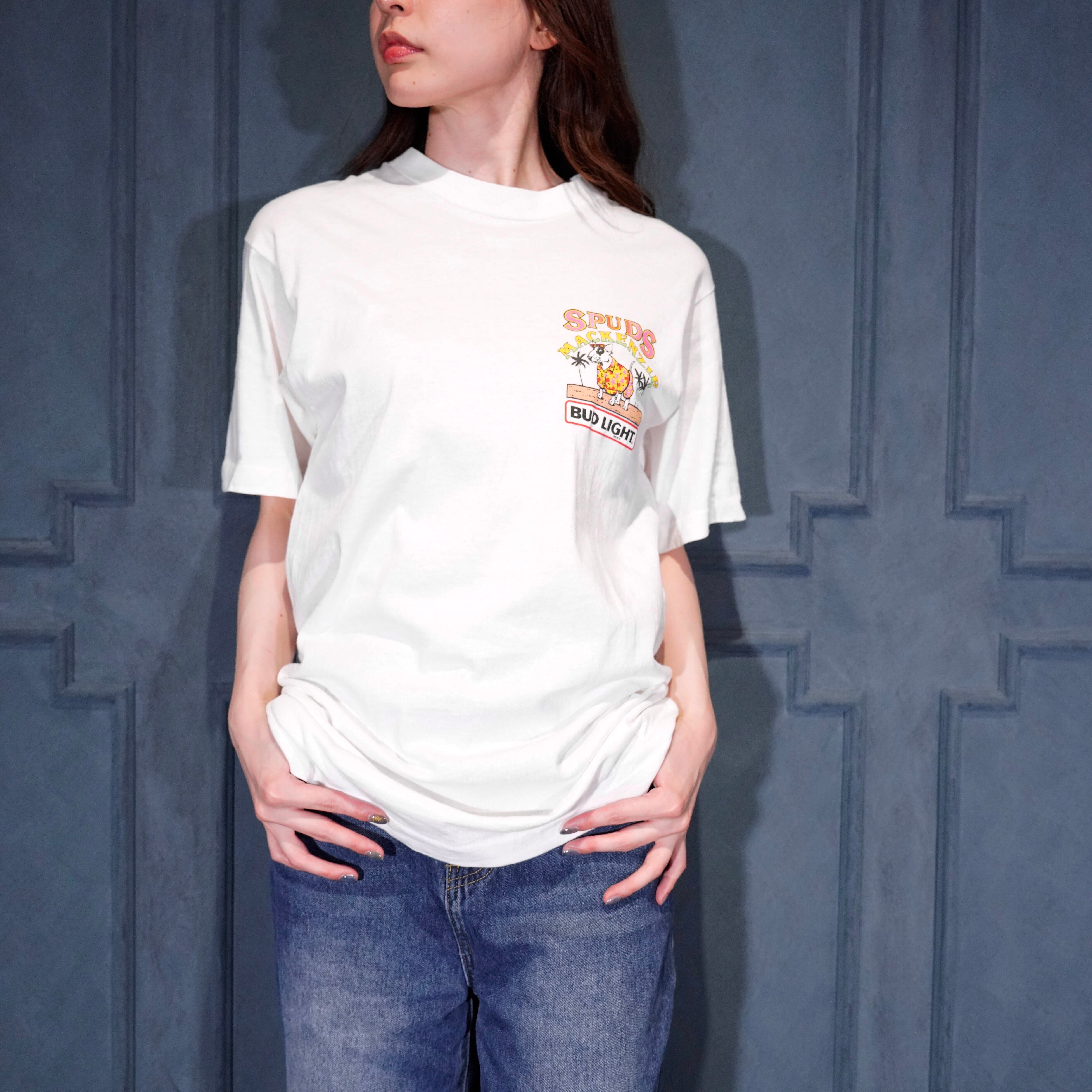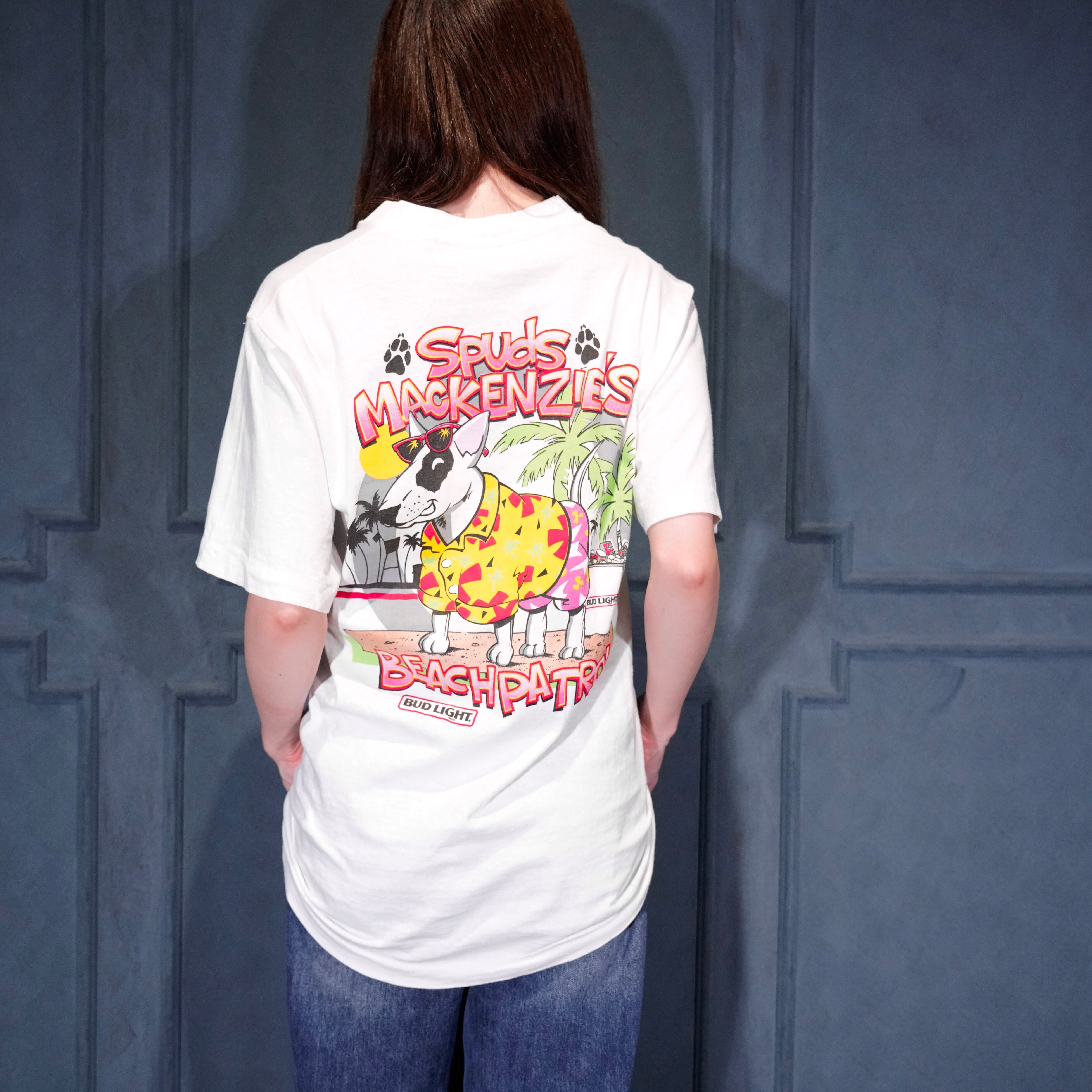 90's USA VINTAGE FRUIT OF THE LOOM SPUDS MACKENZIES BUD LIGHT DOUBLE SIDED PRINT DESIGN T SHIRT/90年代アメリカ古着両面プリントデザインTシャツ