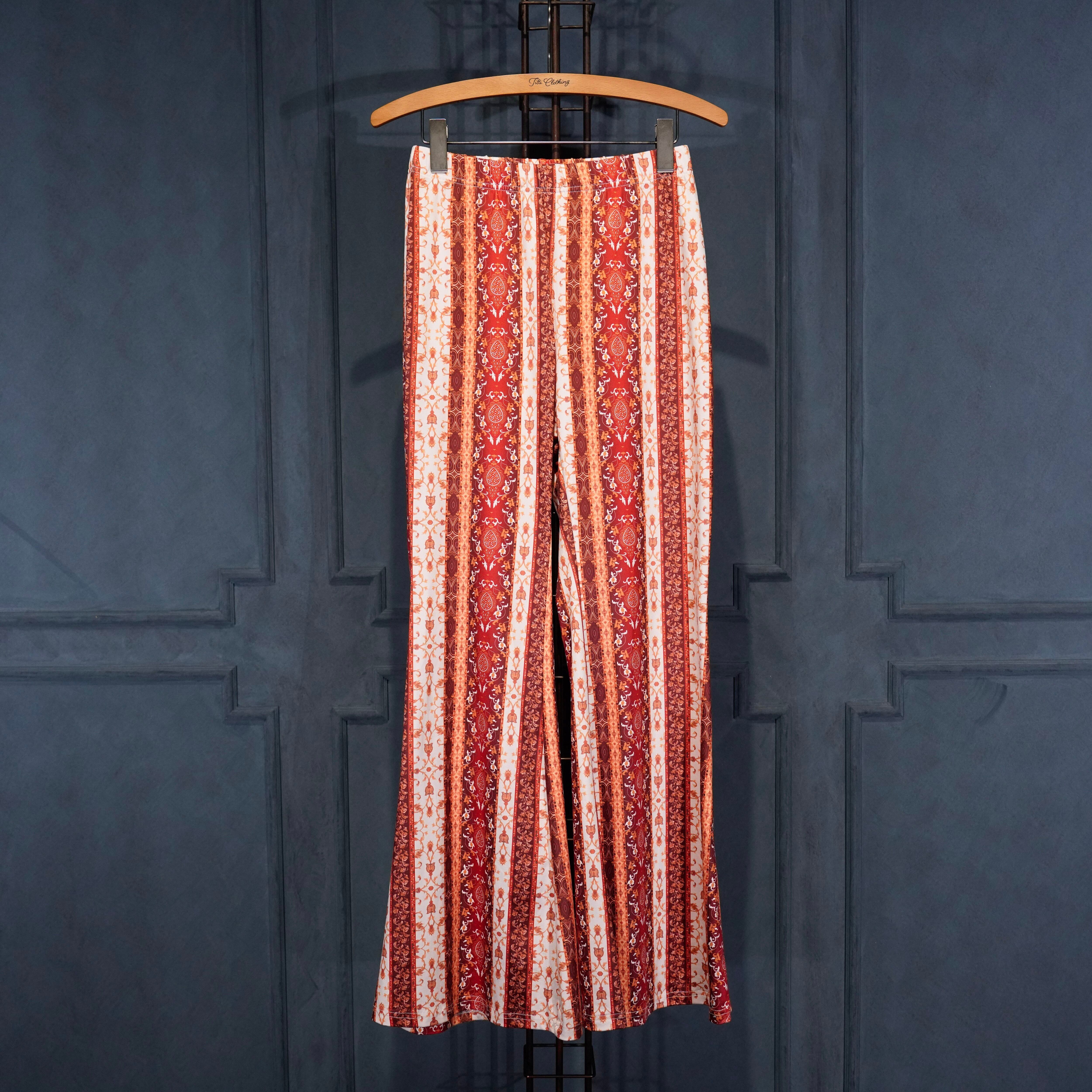 USA VINTAGE PATTERNED DESIGN EASY FLARE PANTS/アメリカ古着柄デザインイージーフレアパンツ