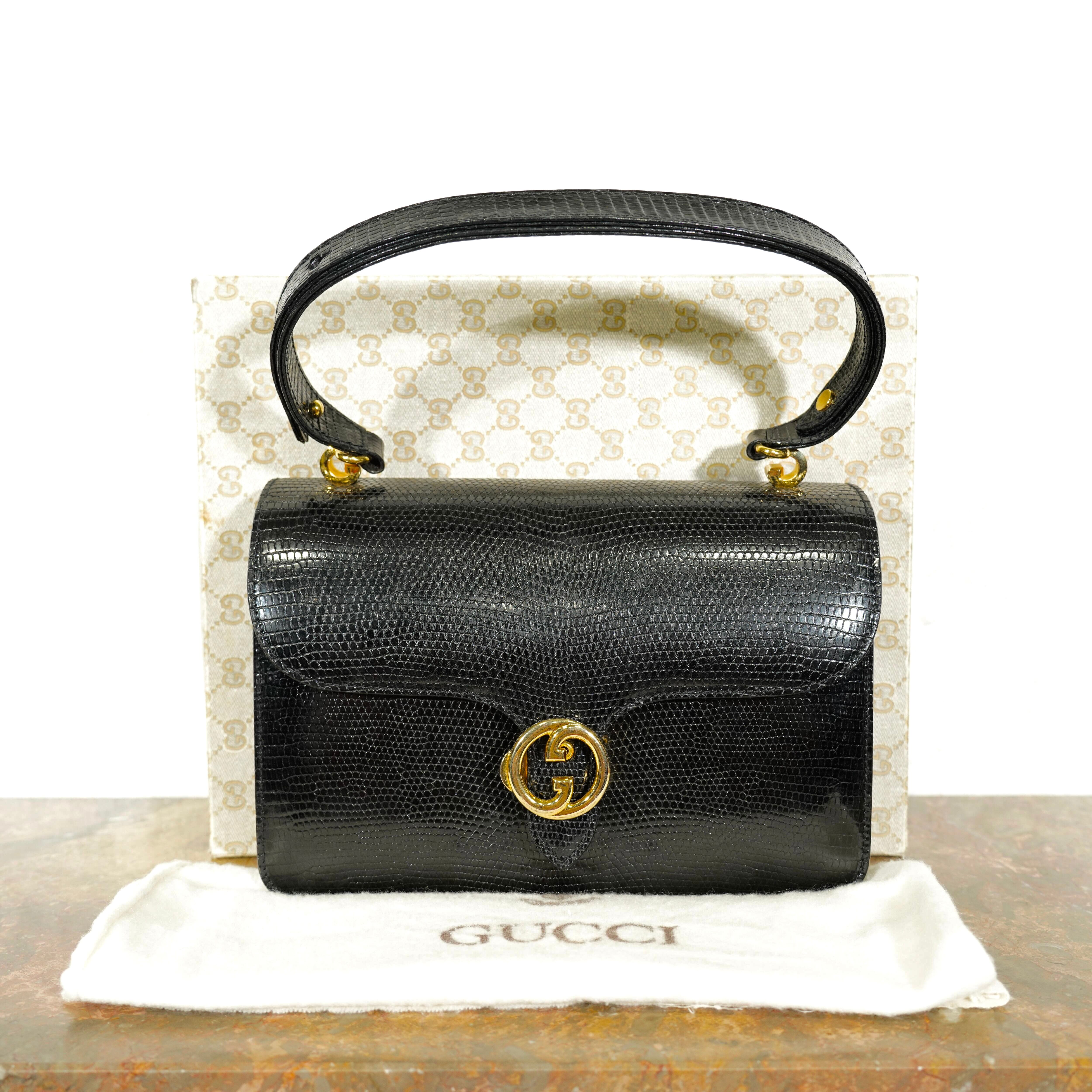 GUCCI METAL LOGO DESIGN LIZARD LEATHER HAND BAG/ヴィンテージグッチメタルロゴデザインリザードレザーハンドバッグ
