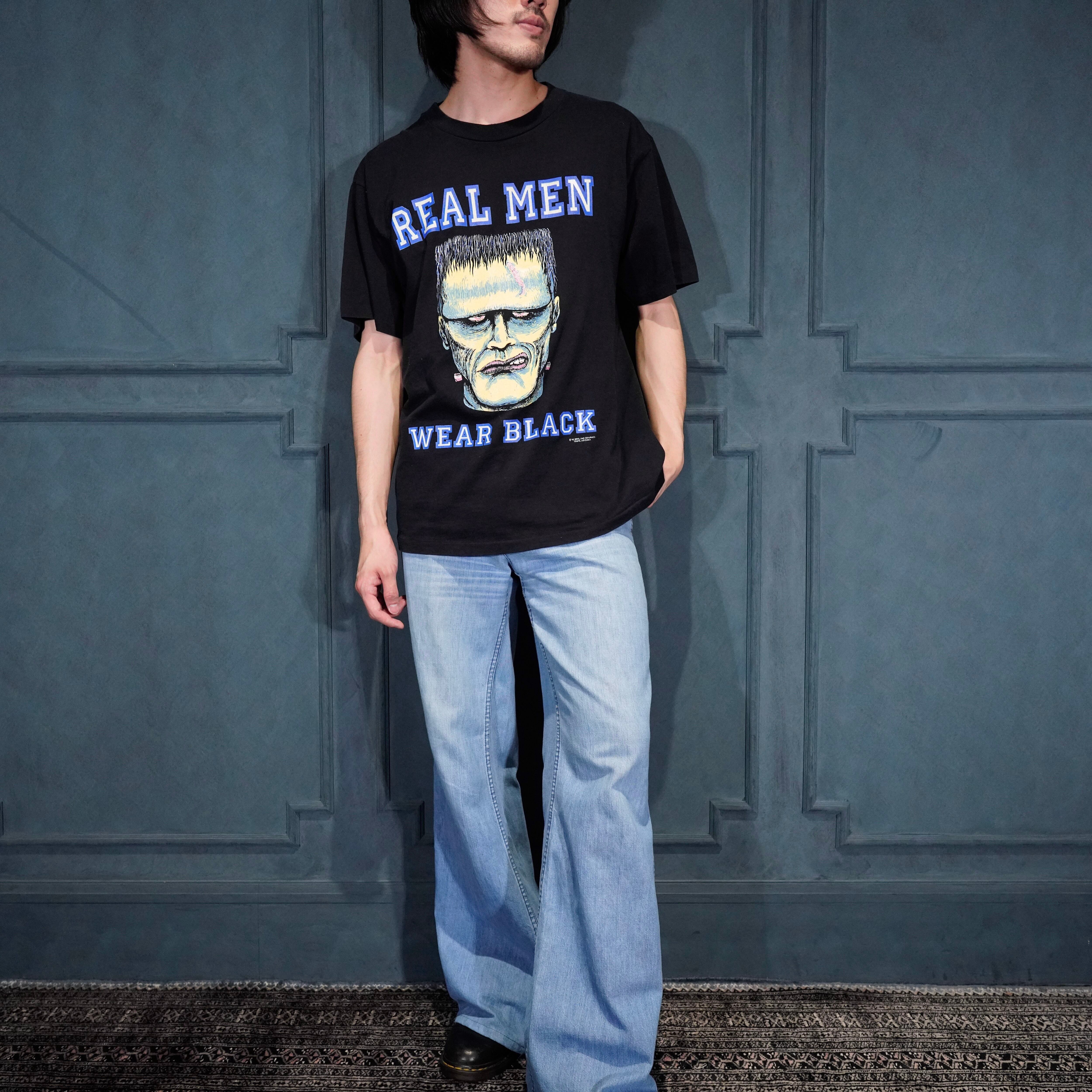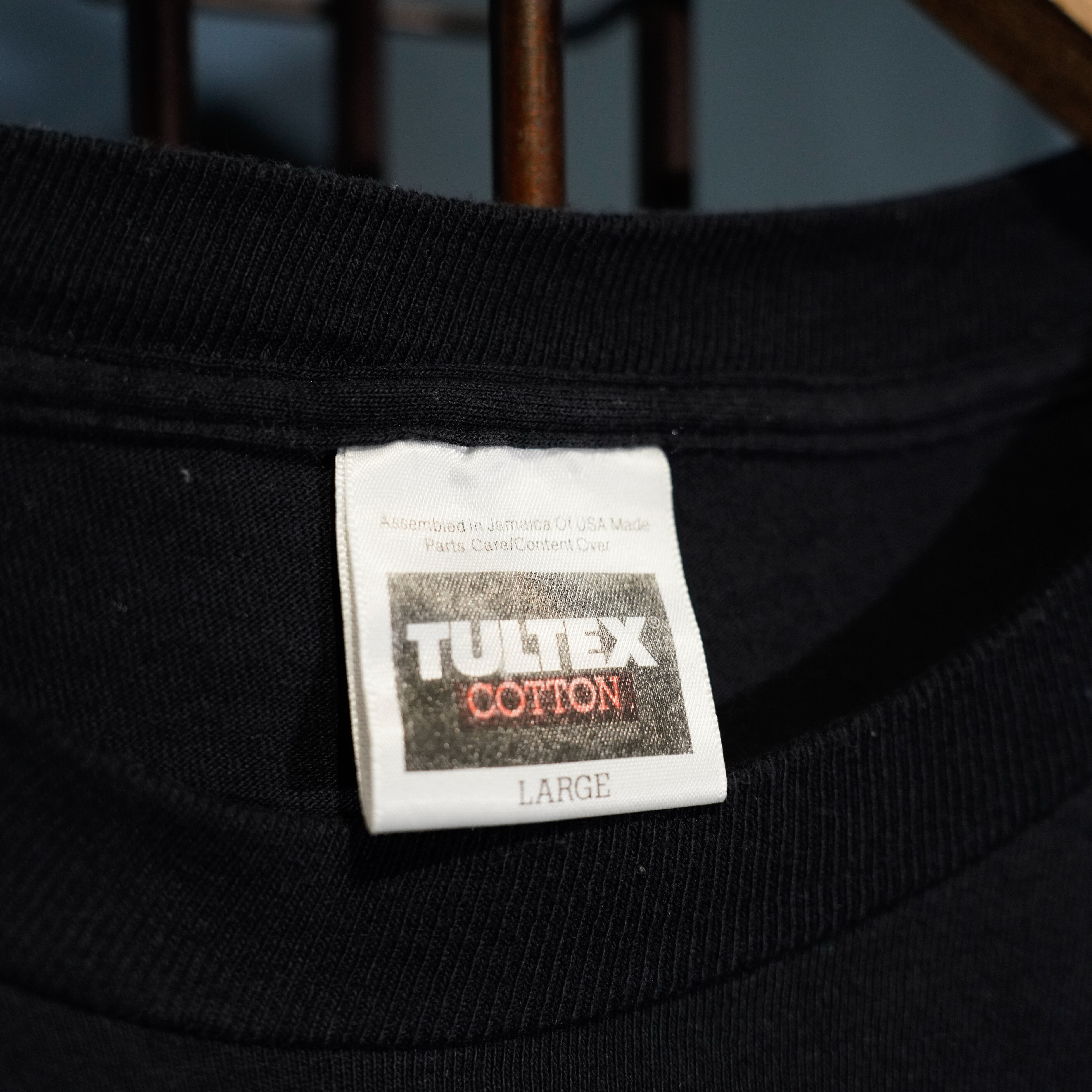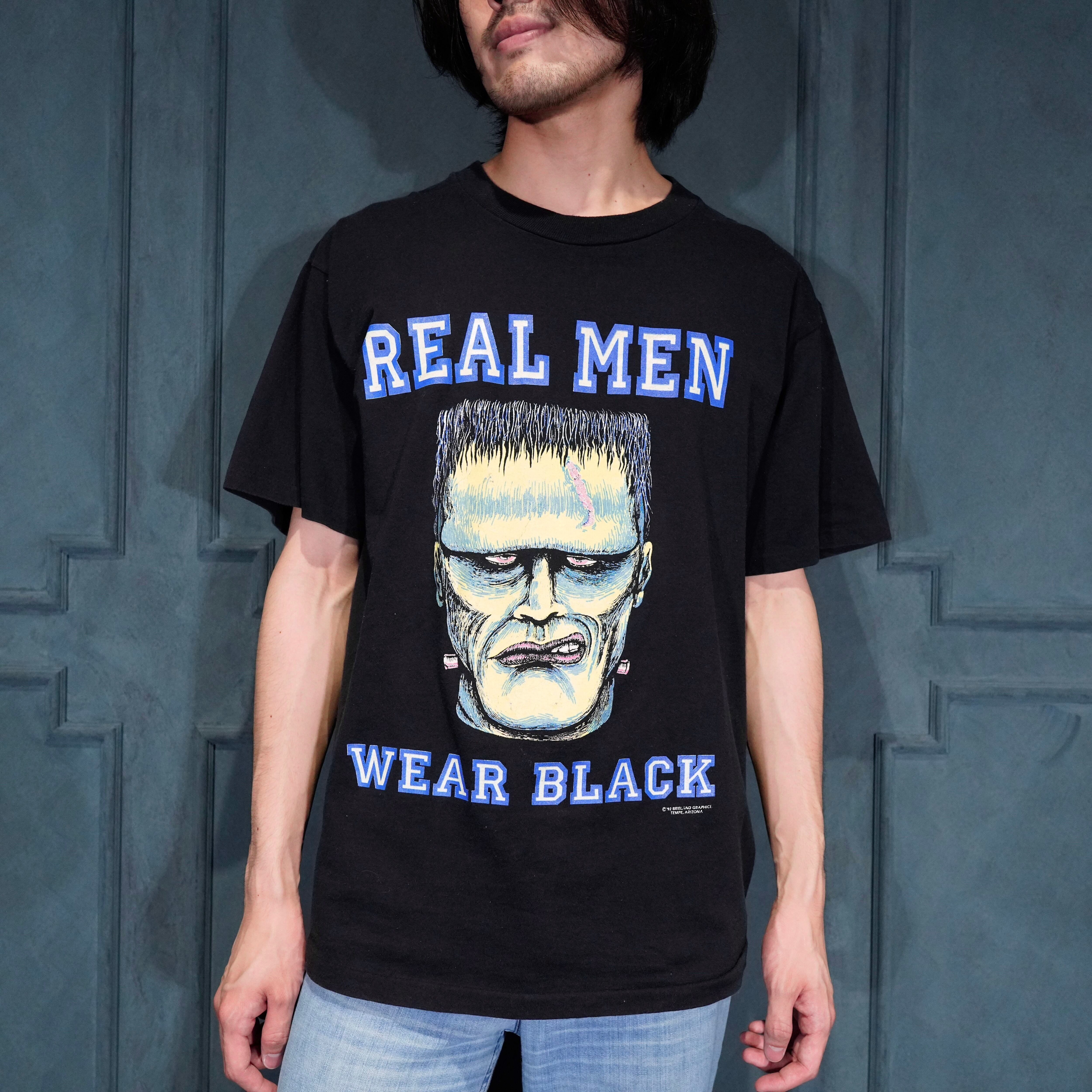 90's USA VINTAGE TULTEX REAL MEN WEAR BLACK PRINT DESIGN T SHIRT/90年代アメリカ古着プリントデザインTシャツ