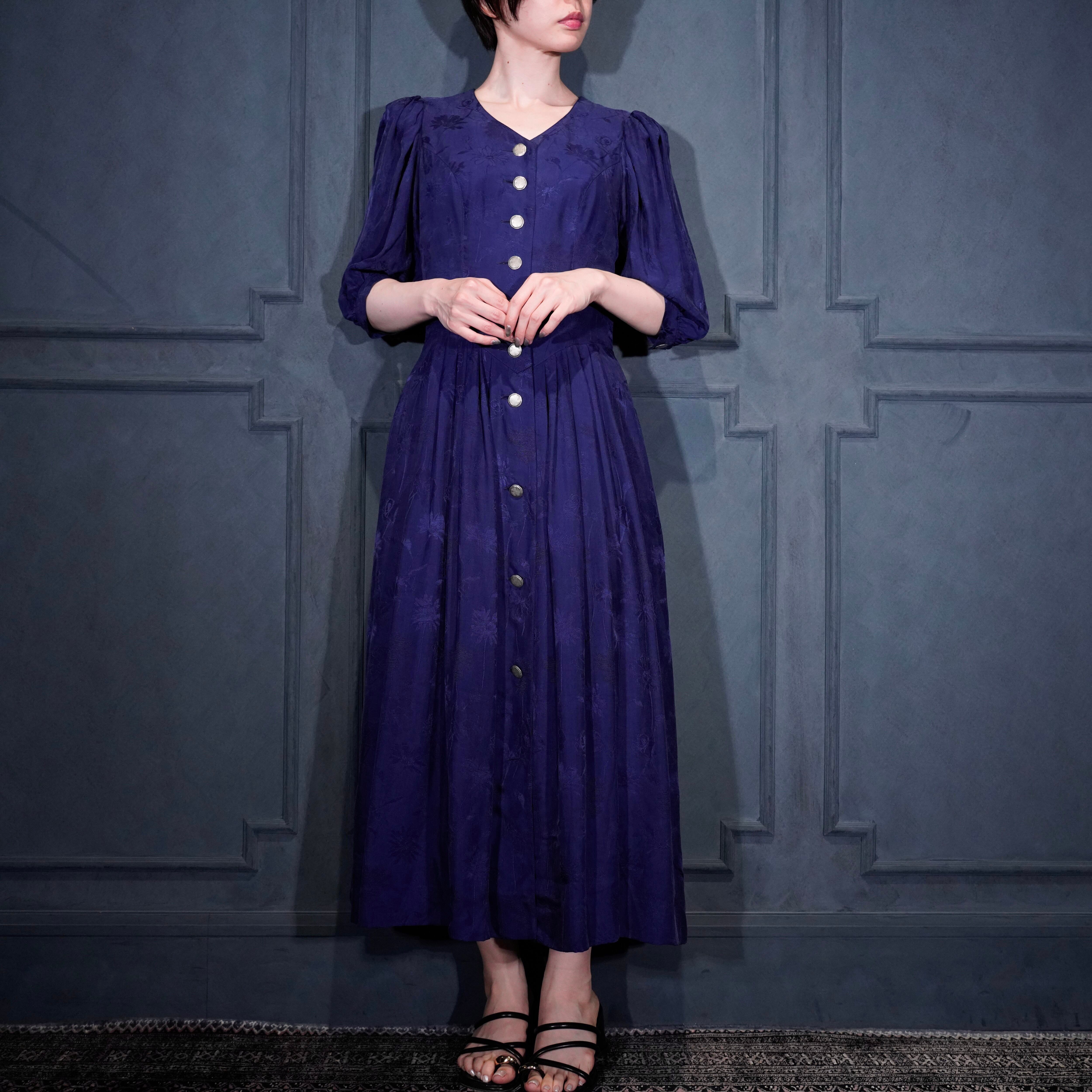 EU VINTAGE FLOWER PATTERNED EMBROIDERY JACQUARD DESIGN TYROLEAN ONE PIECE/ヨーロッパ古着お花柄ジャガード刺繍デザインチロリアンワンピース